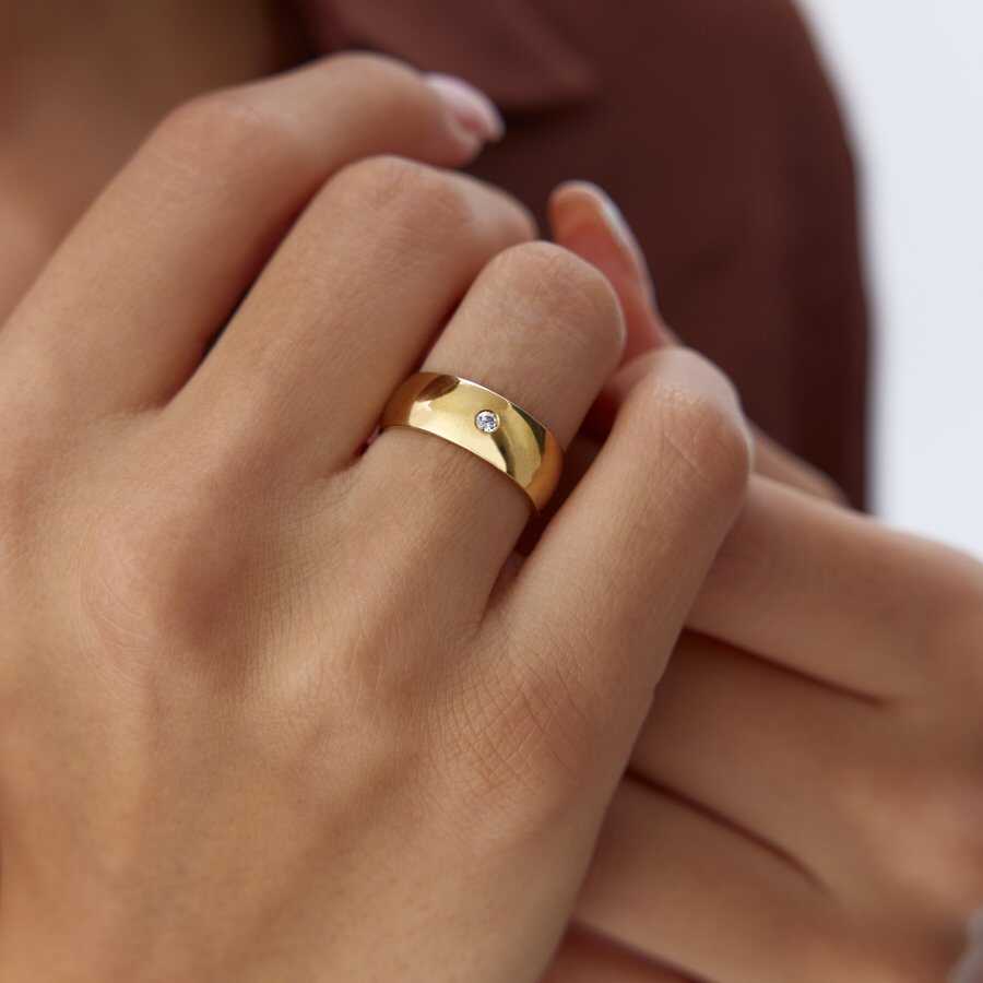 5.0 mm Taşlı Bombe Klasik Alyans - Tülay Alyans