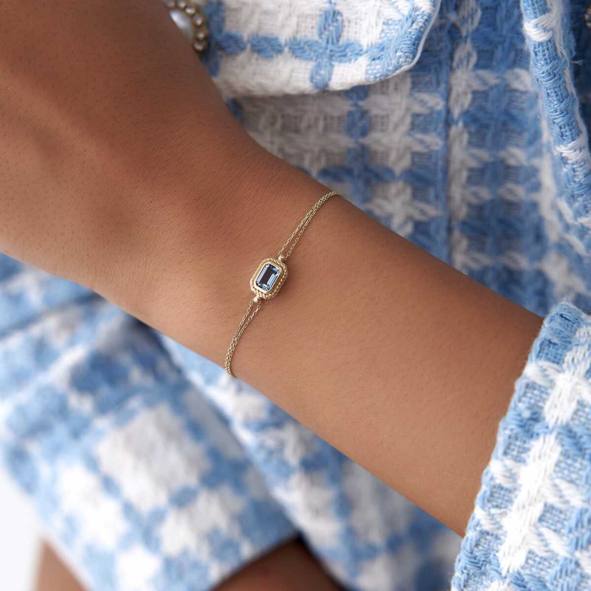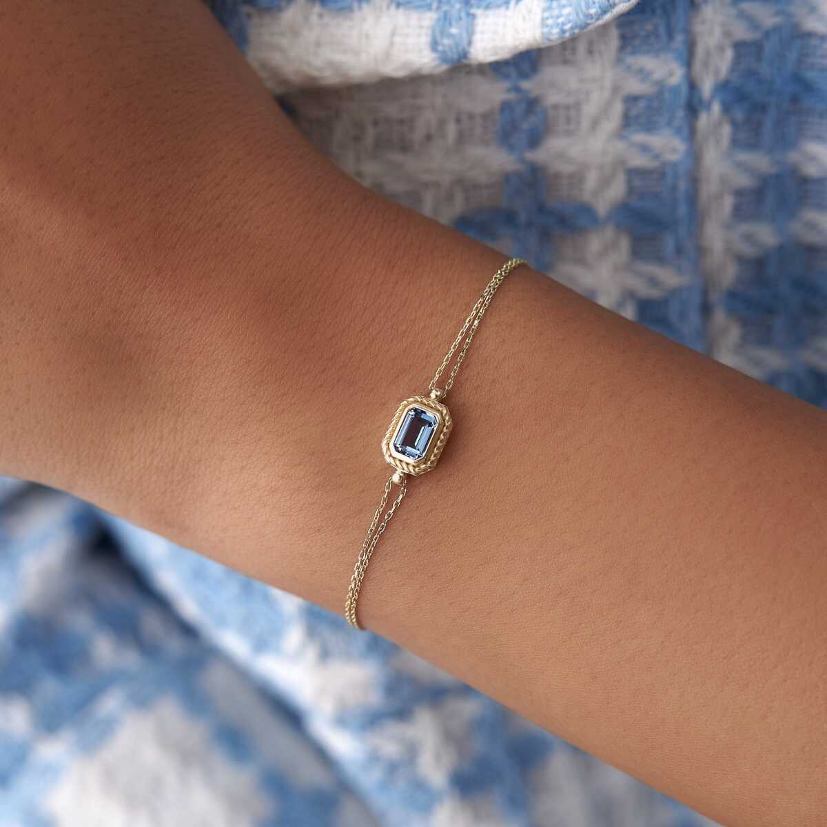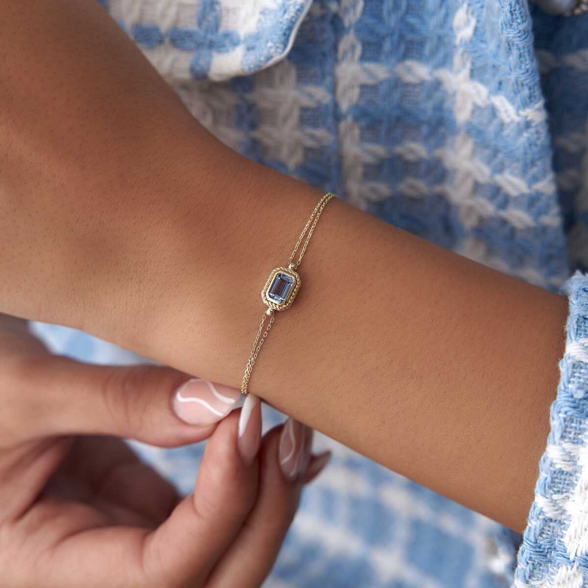 Baget Mavi Taş Sıralı Altın Bileklik - Cemart Baget Mavi Taş Sıralı Altın Bileklik - Cemart (1)