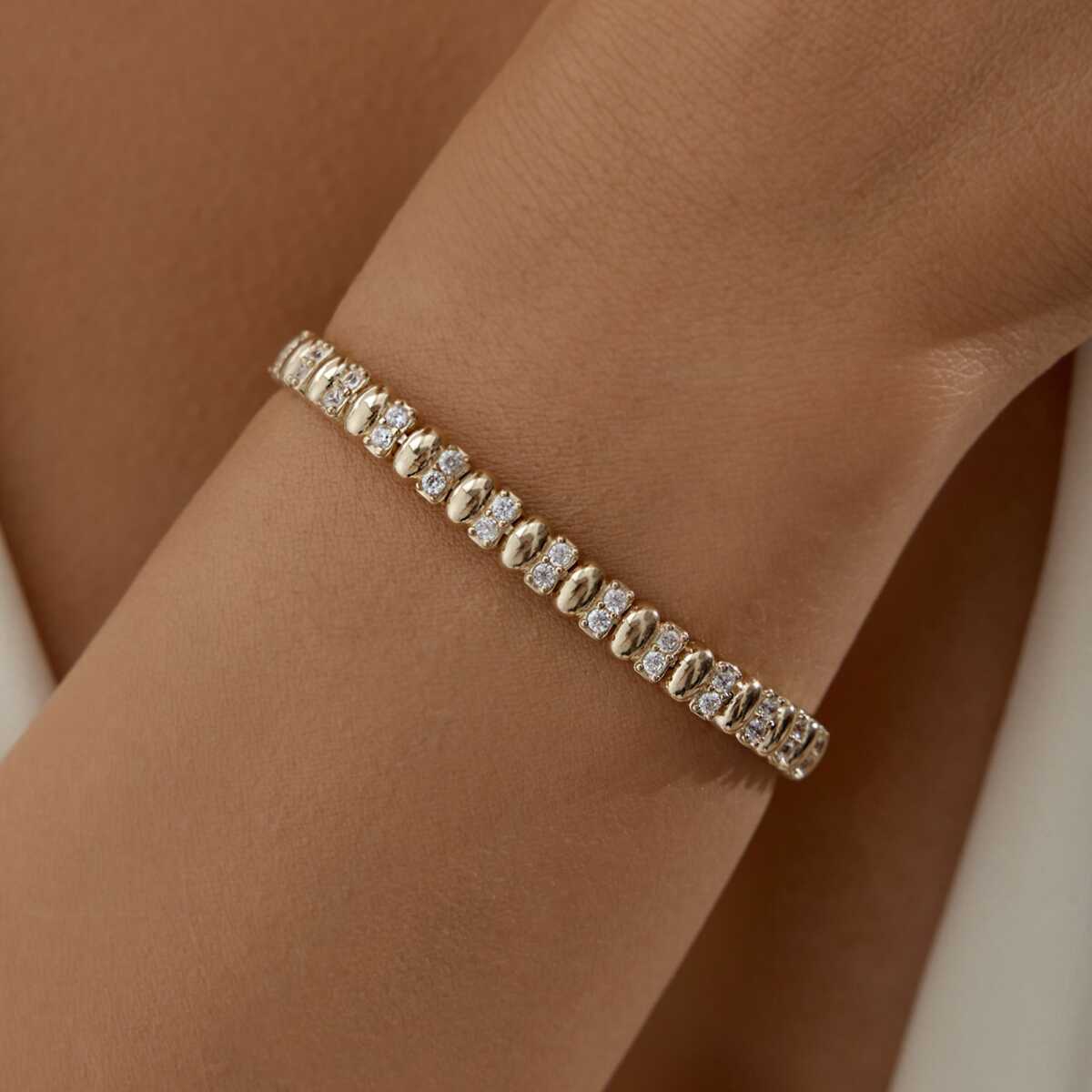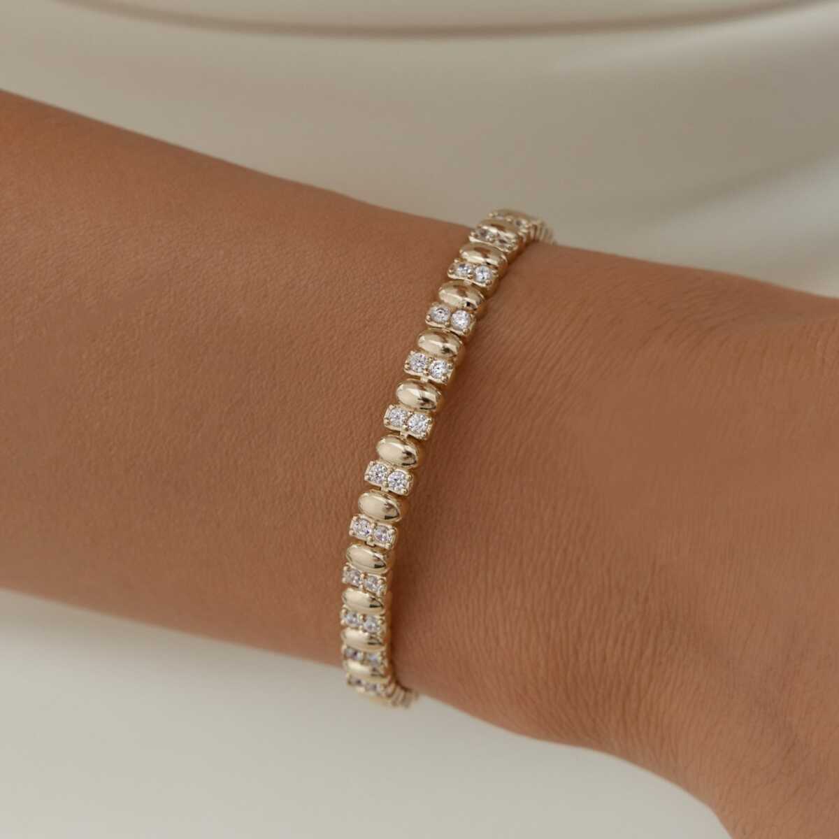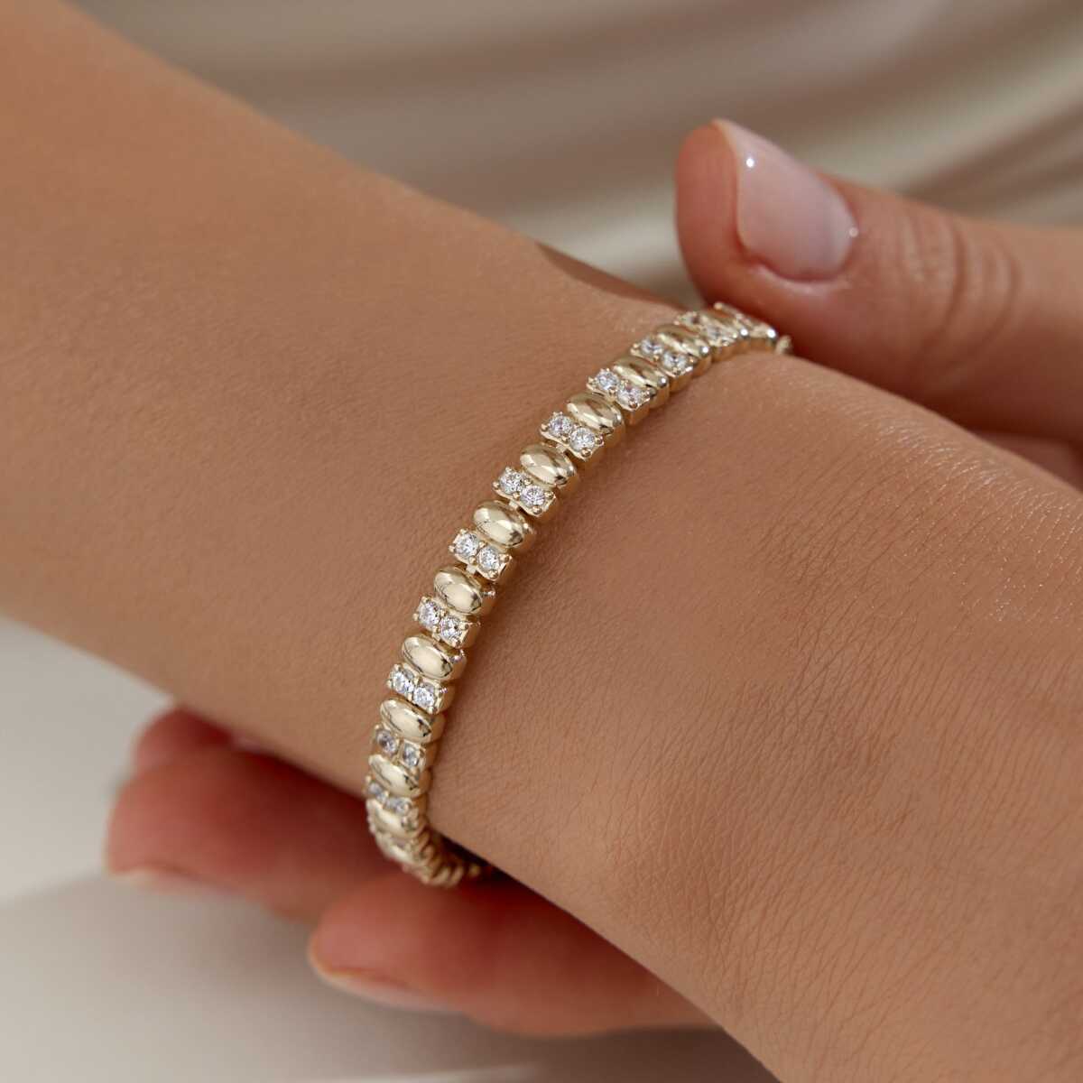 Geometrik Oval Taşlı Altın Bileklik
