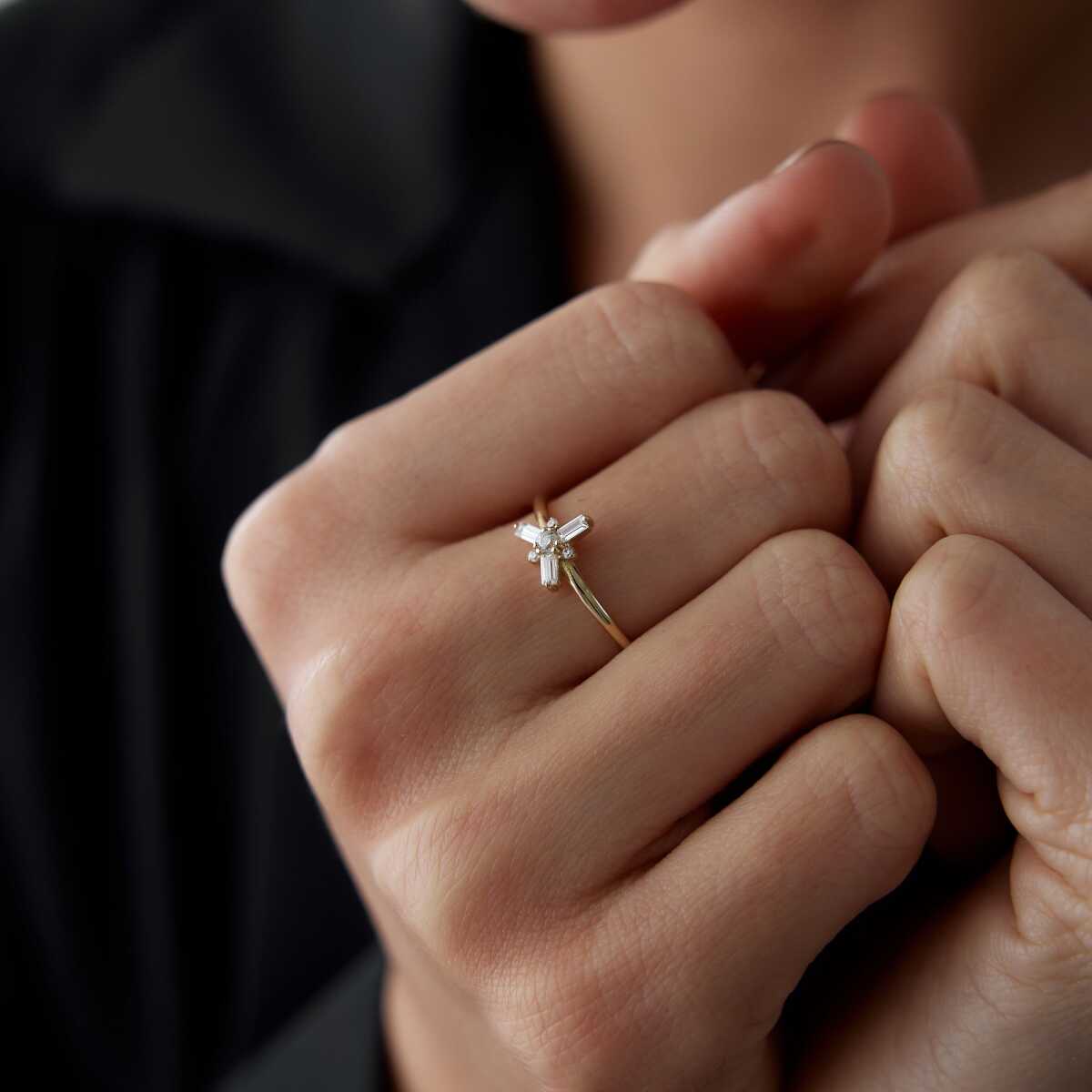 Minimal Baget Taşlı İnce Altın Yüzük - Cemart Minimal Baget Taşlı İnce Altın Yüzük - Cemart (1)