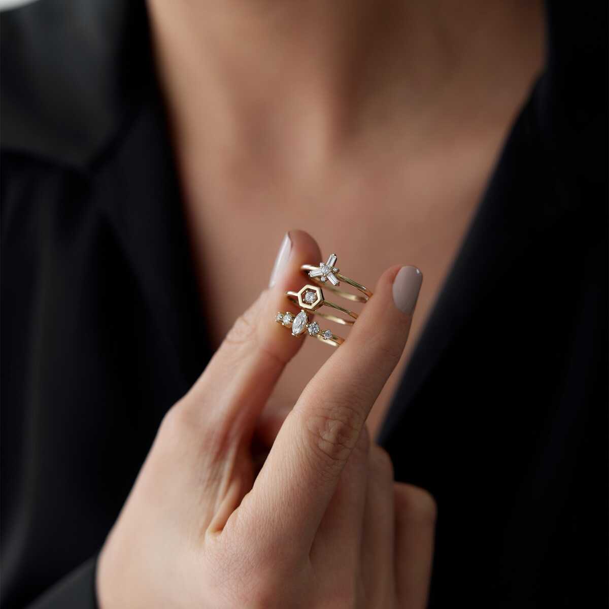 Mekik Kesim Taşlı Minimal Altın Yüzük - Arden Mekik Kesim Taşlı Minimal Altın Yüzük - Arden (1)