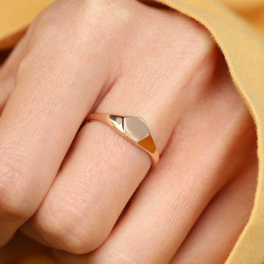 Geometrik Taşlı Altın Yüzük