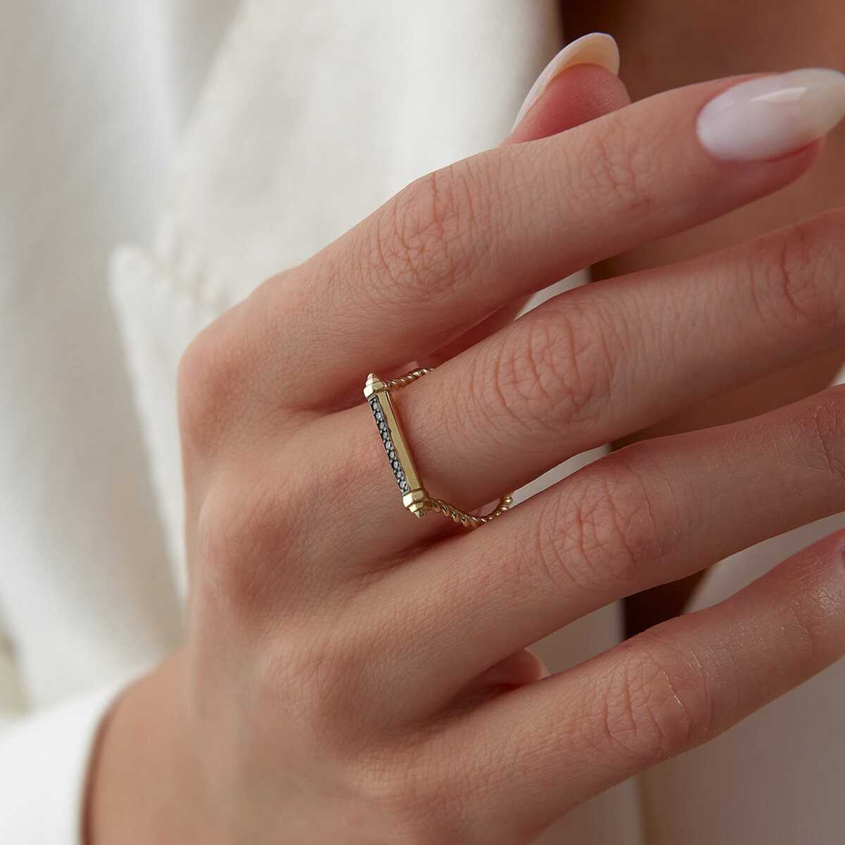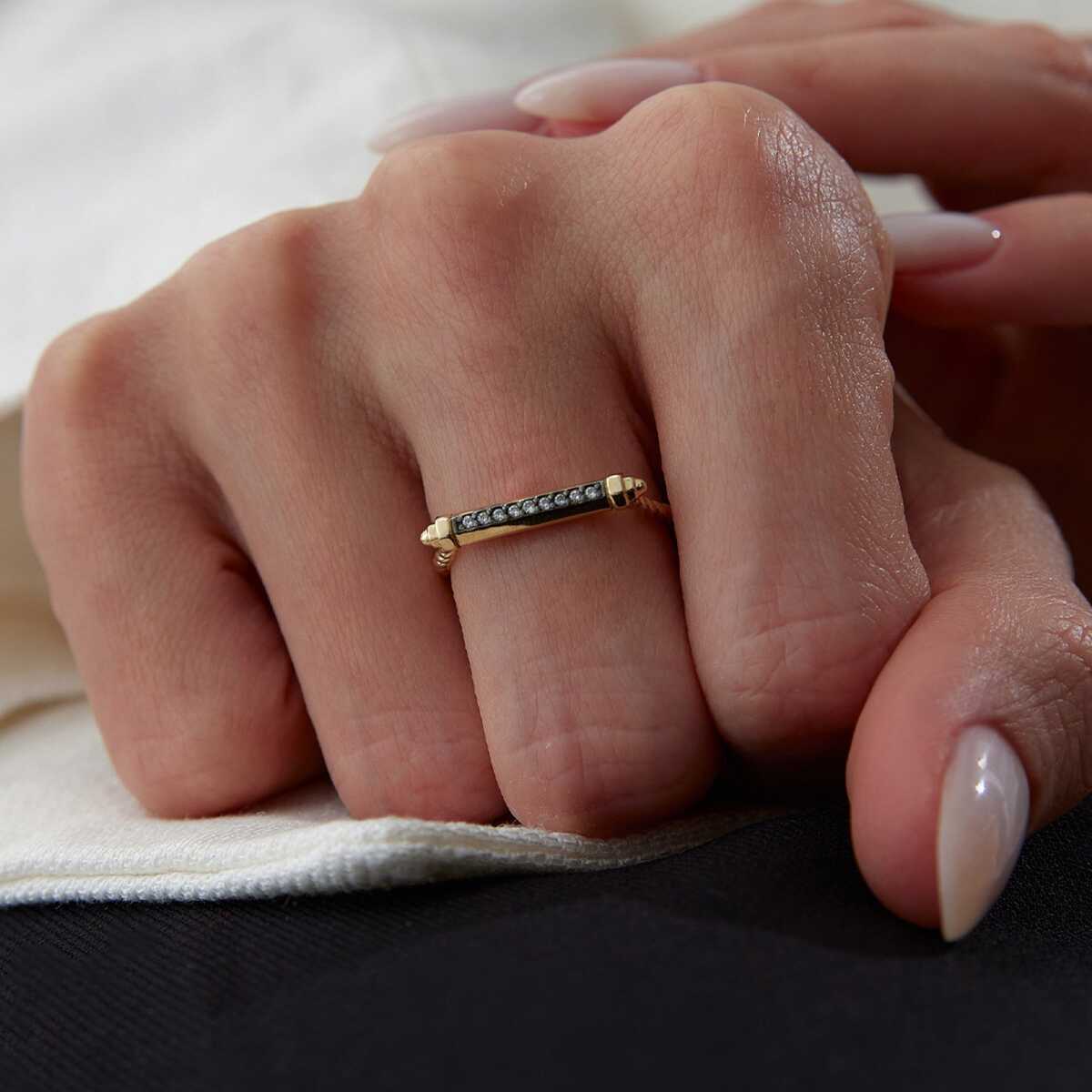 Beyaz Taşlı Line Yüzük
