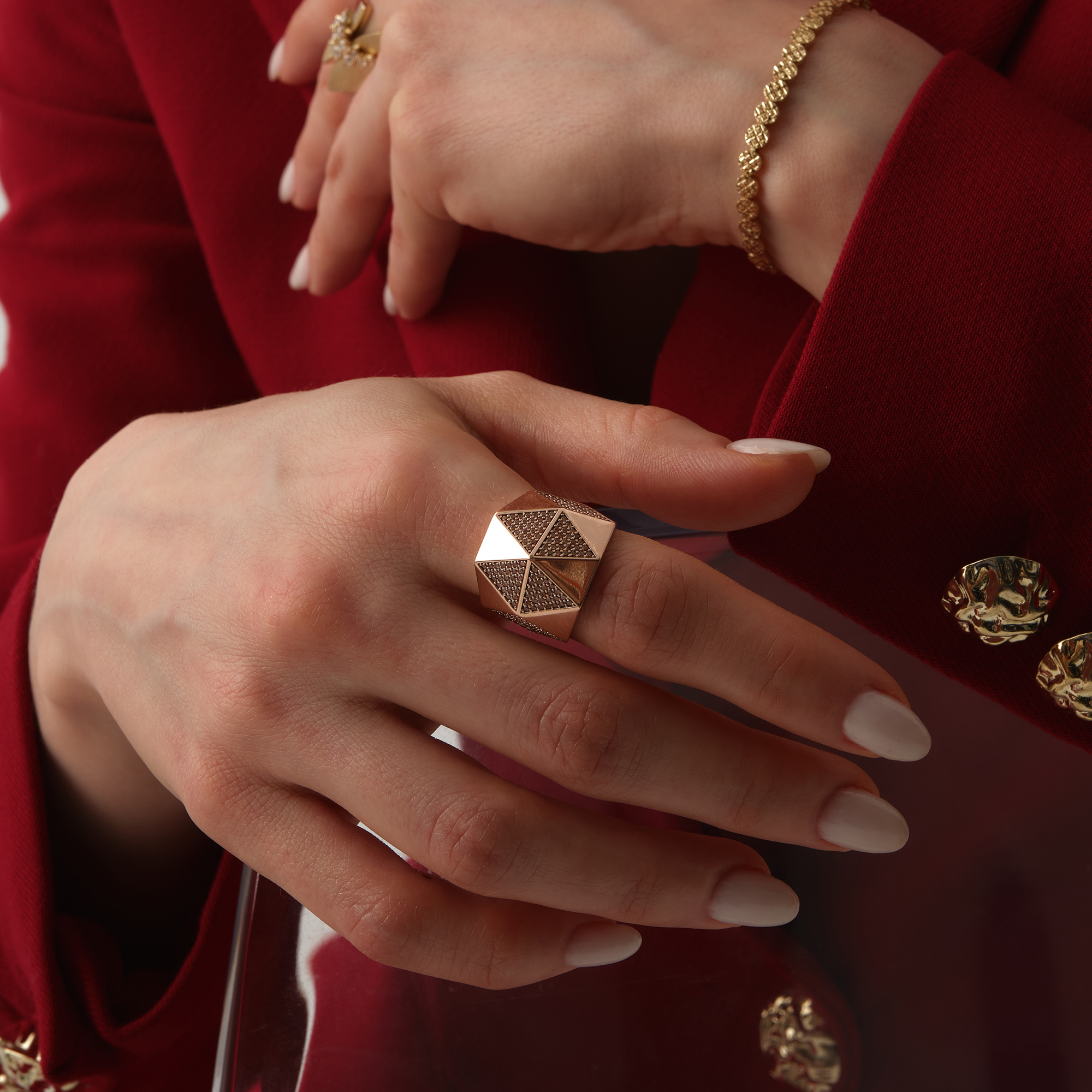 Taşlı Prizma Bold Altın Yüzük