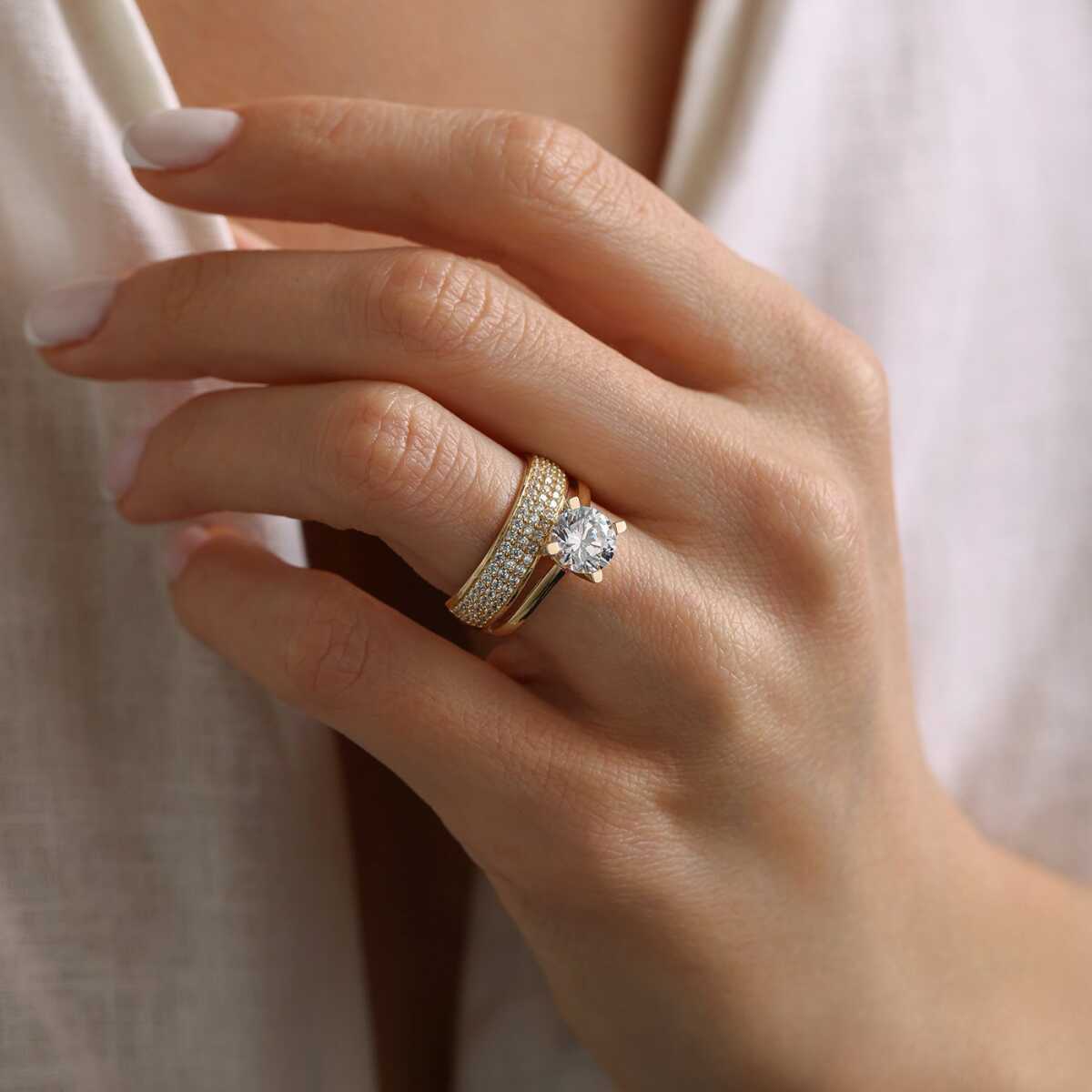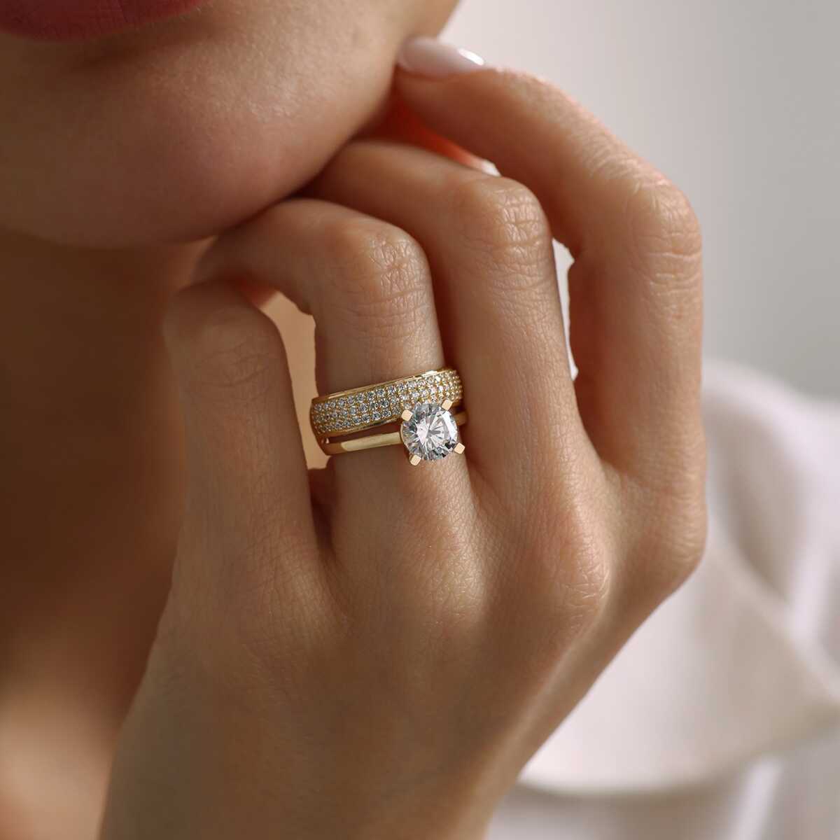 Çift Tur Alyanslı Tektaş Yüzük - Oragold Orhan Çift Tur Alyanslı Tektaş Yüzük - Oragold Orhan (1)