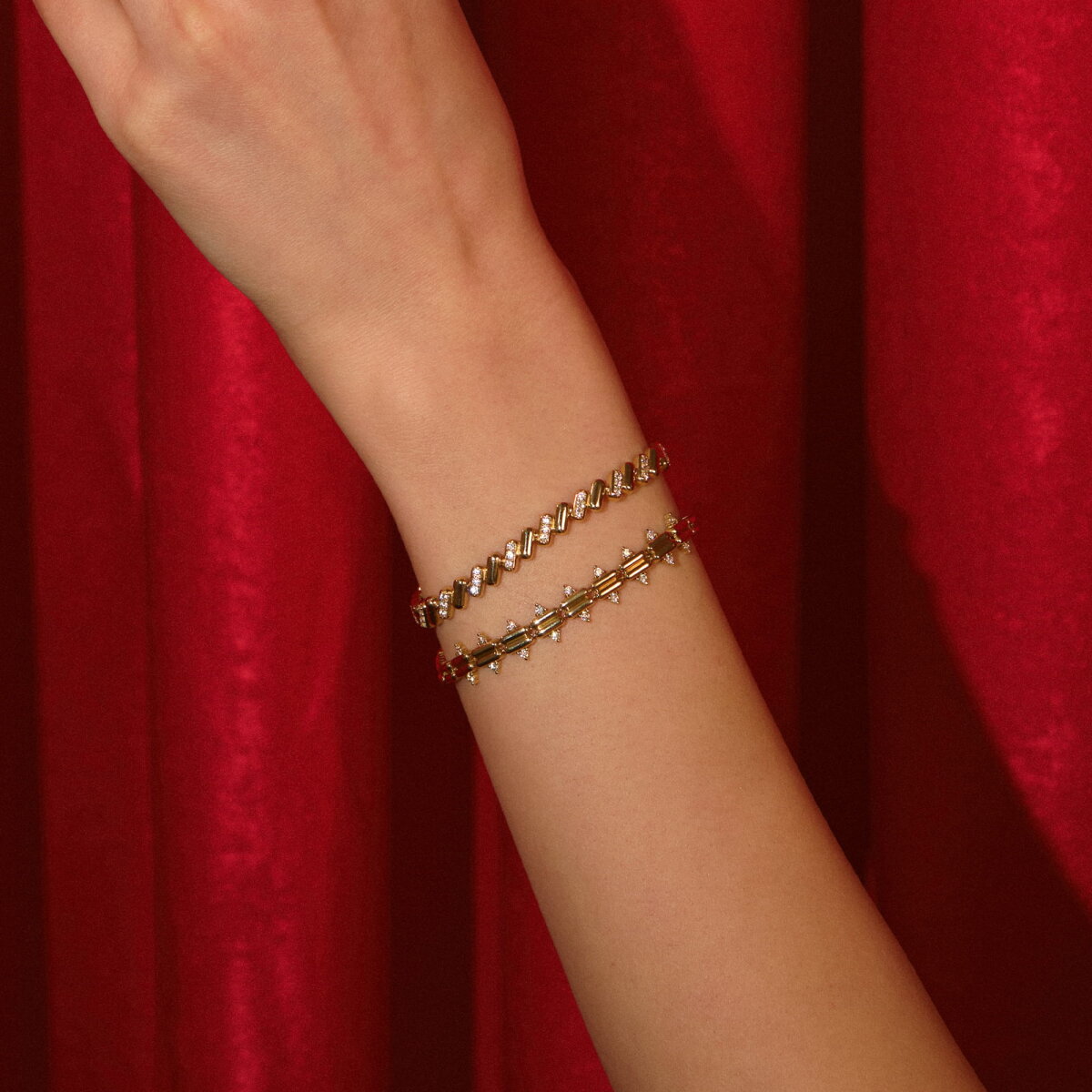 Geometrik Blok Taşlı Altın Bileklik