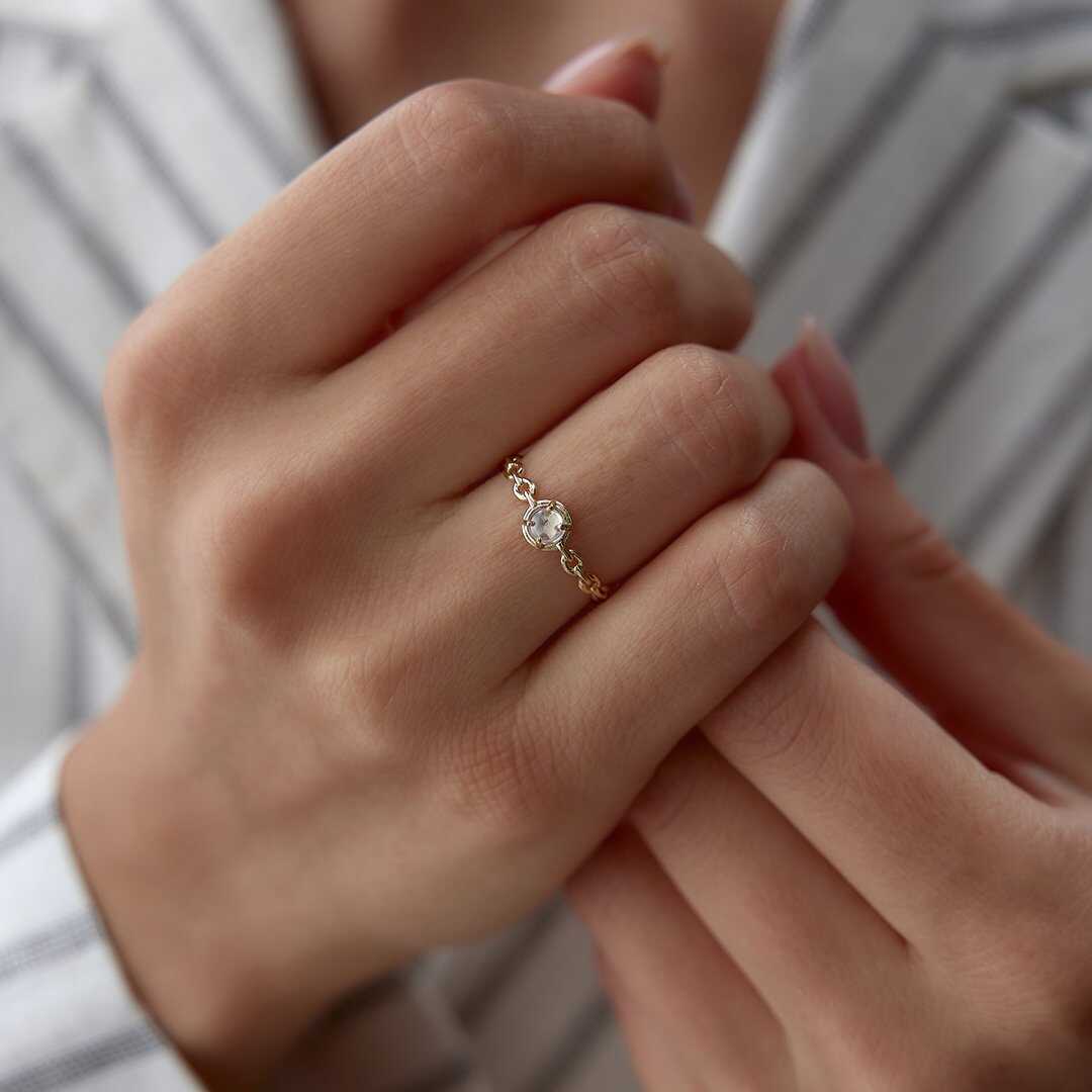 Tek Taş Efektli Minimal Altın Yüzük - Cemart Tek Taş Efektli Minimal Altın Yüzük - Cemart (1)