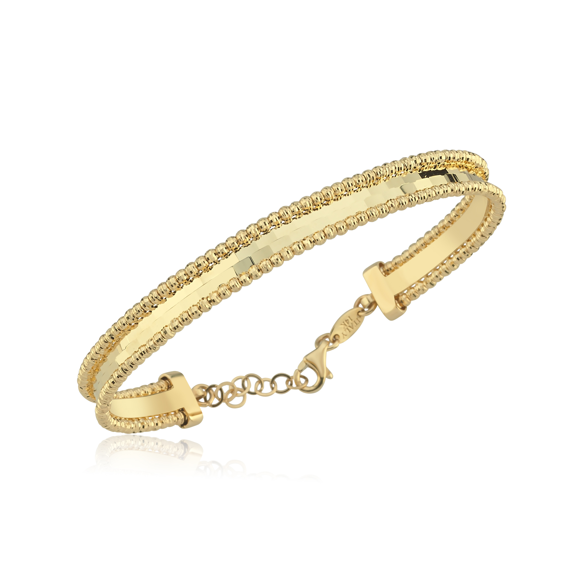 Çift Kenar Boncuklu Line Altın Kelepçe