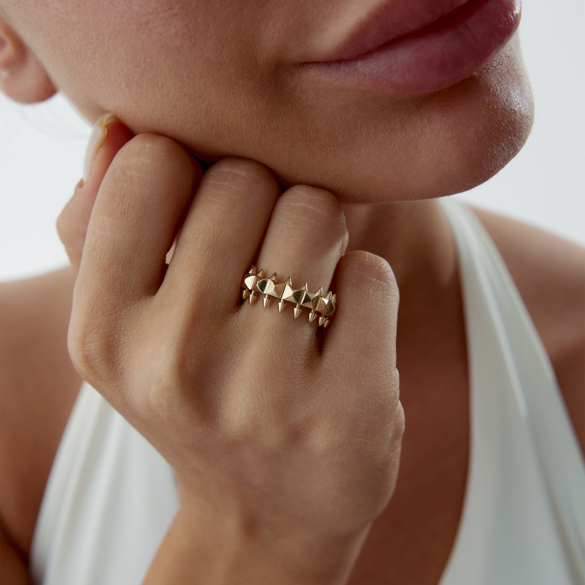 Minimal Üçgen Detaylı Taşlı Altın Yüzük - Cemart Minimal Üçgen Detaylı Taşlı Altın Yüzük - Cemart (1)