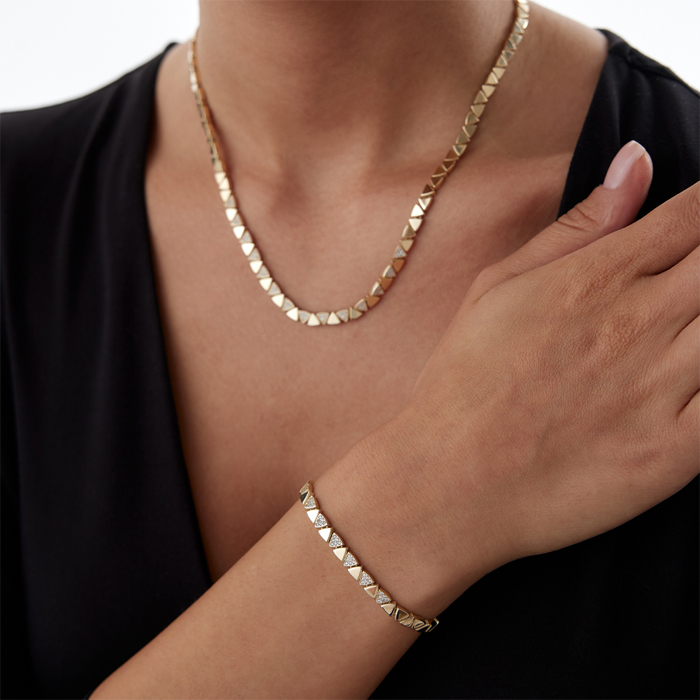 Taşlı Mesh Altın Set