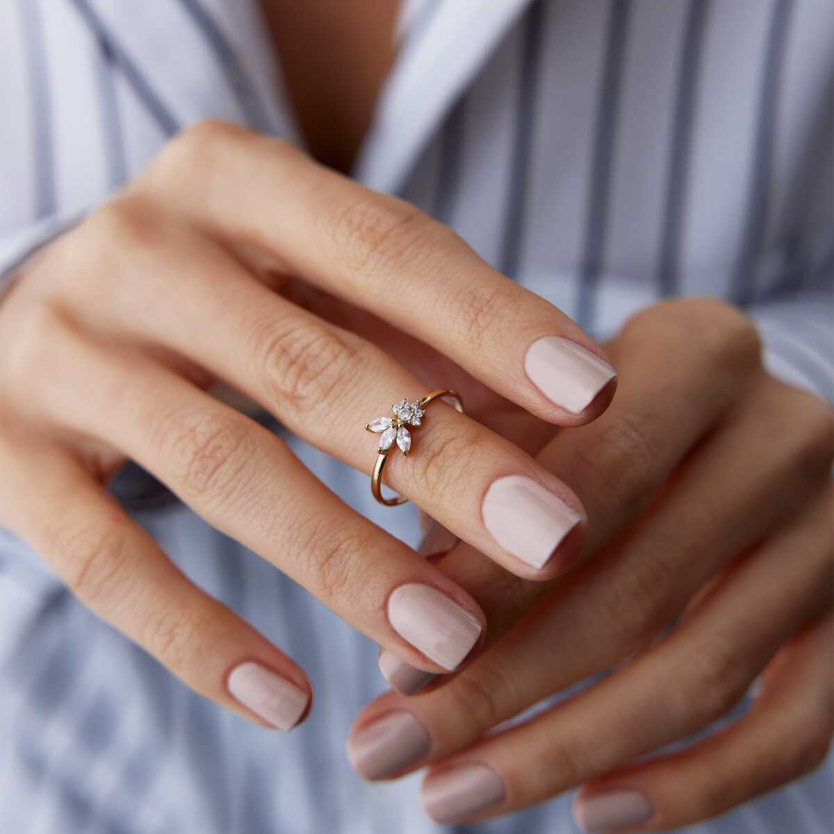Çiçek Motifli Taşlı Minimal Altın Yüzük - Arden Çiçek Motifli Taşlı Minimal Altın Yüzük - Arden (1)