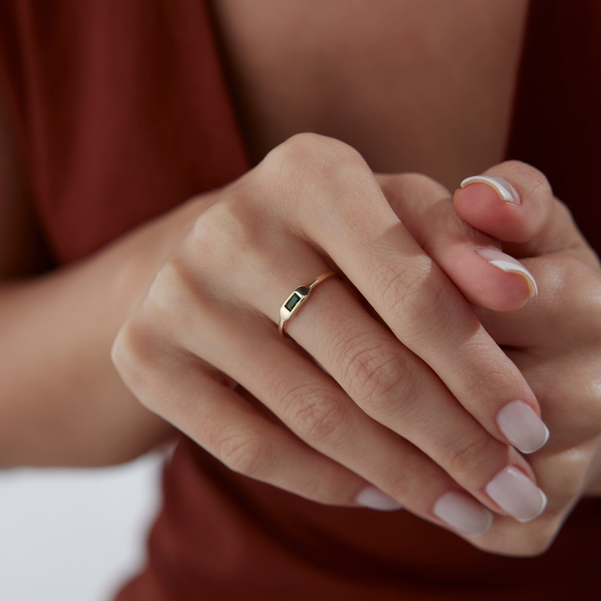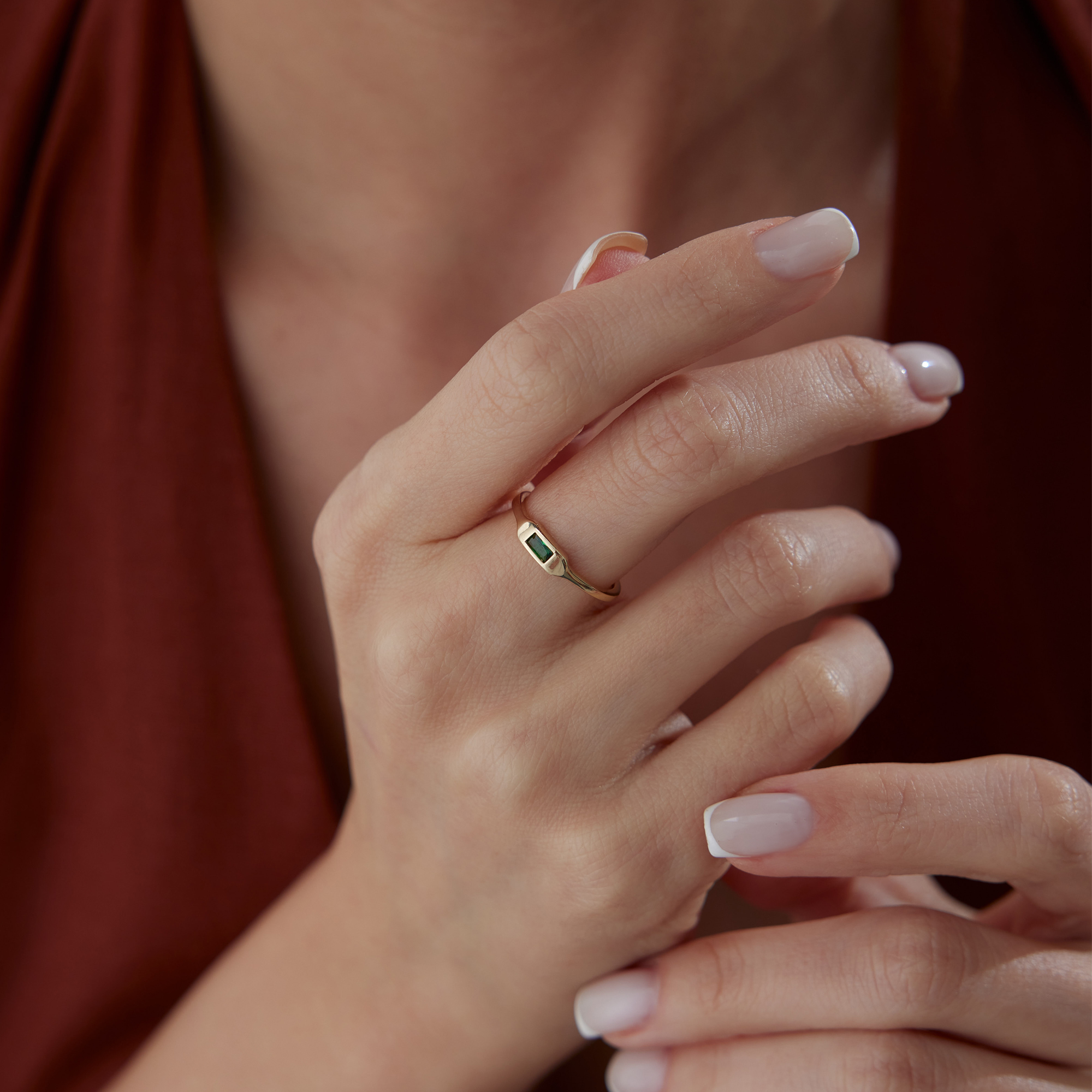 Geometrik Baget Yeşil Taşlı Altın Yüzük - Cemart Geometrik Baget Yeşil Taşlı Altın Yüzük - Cemart (1)
