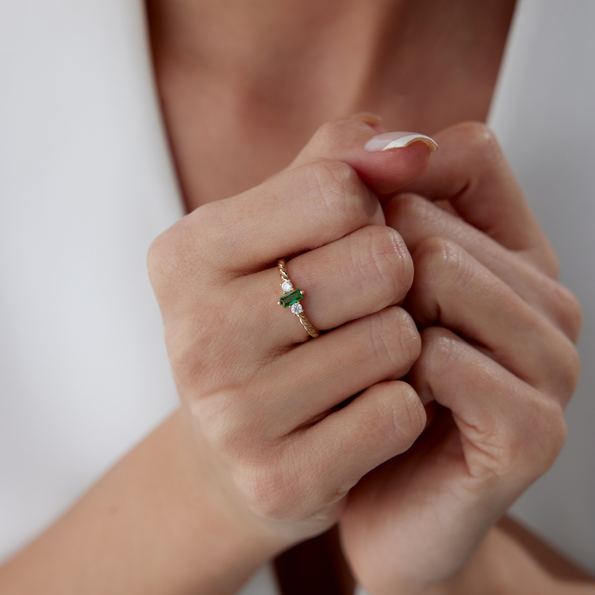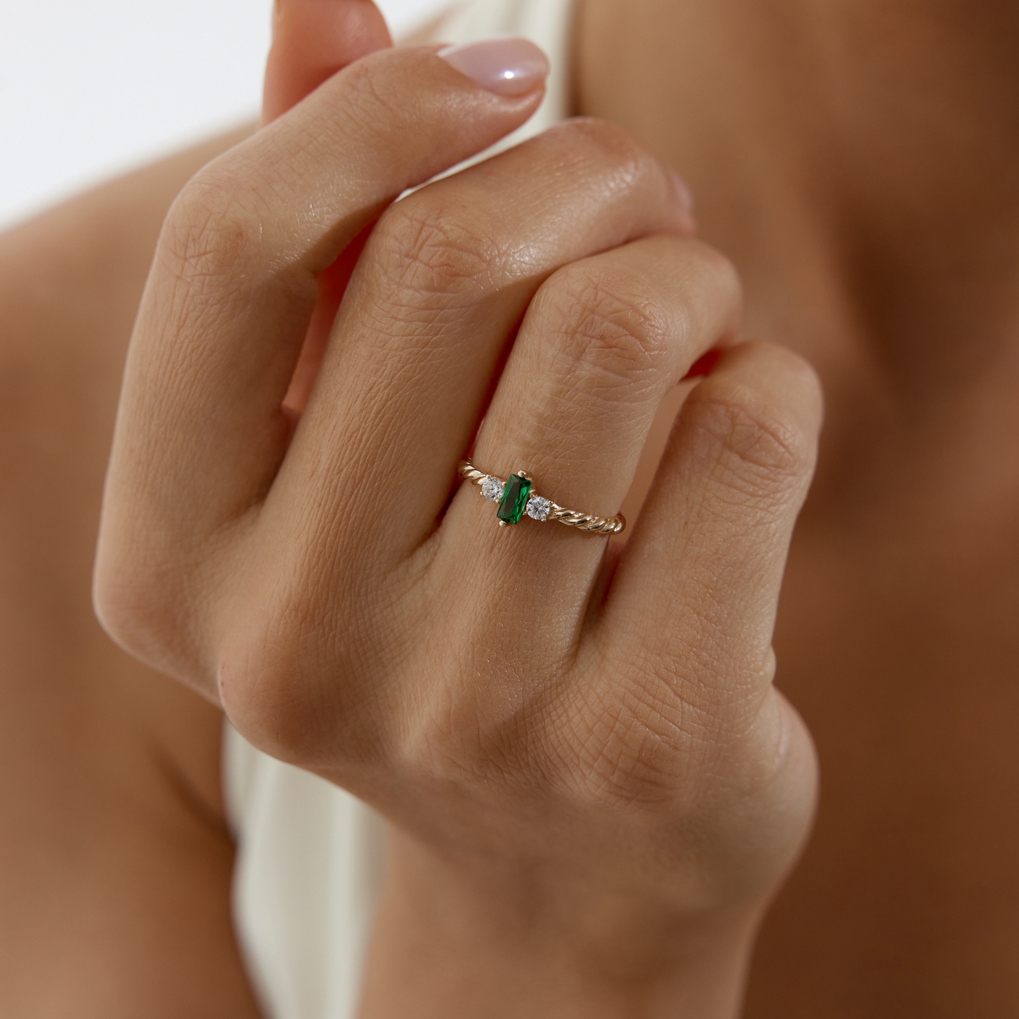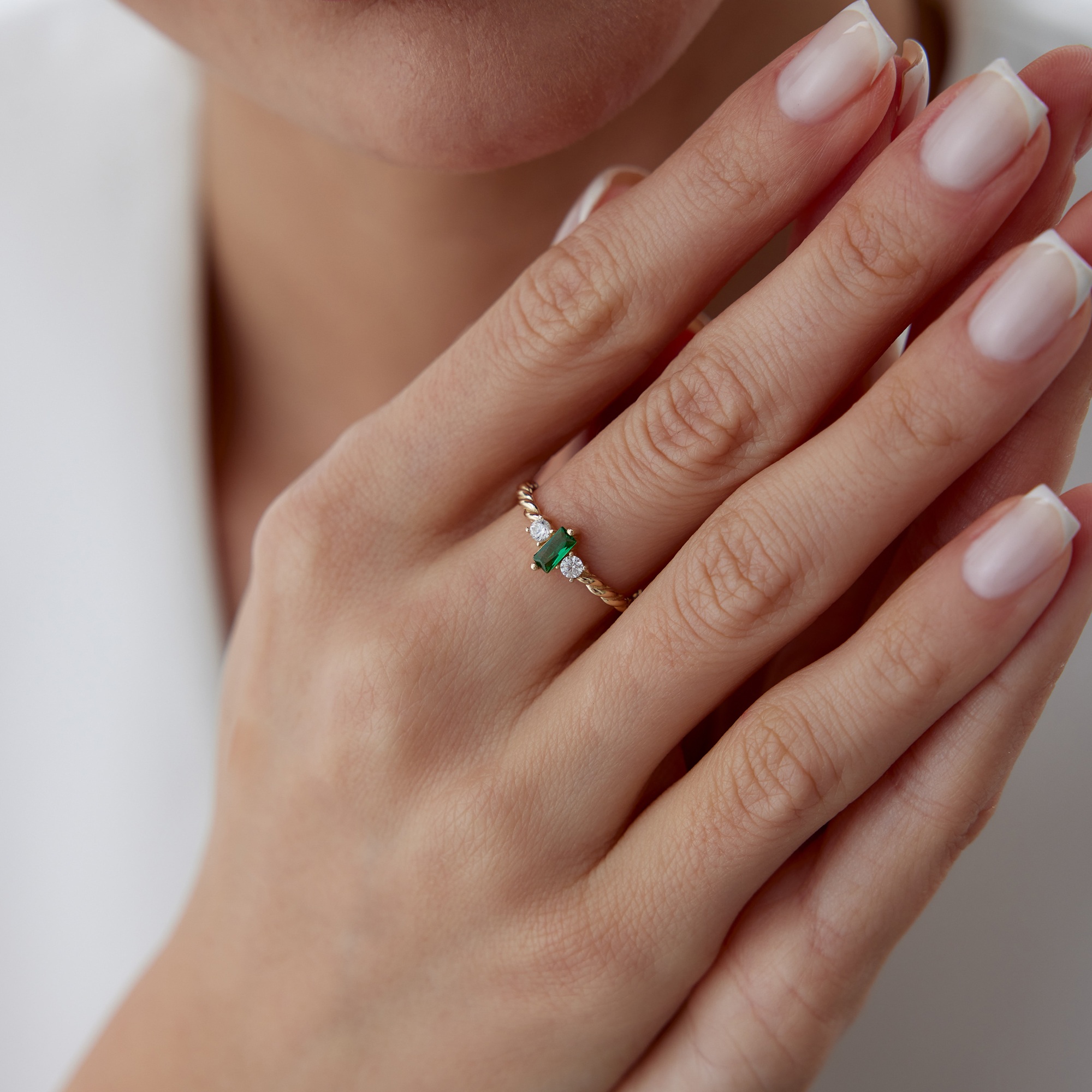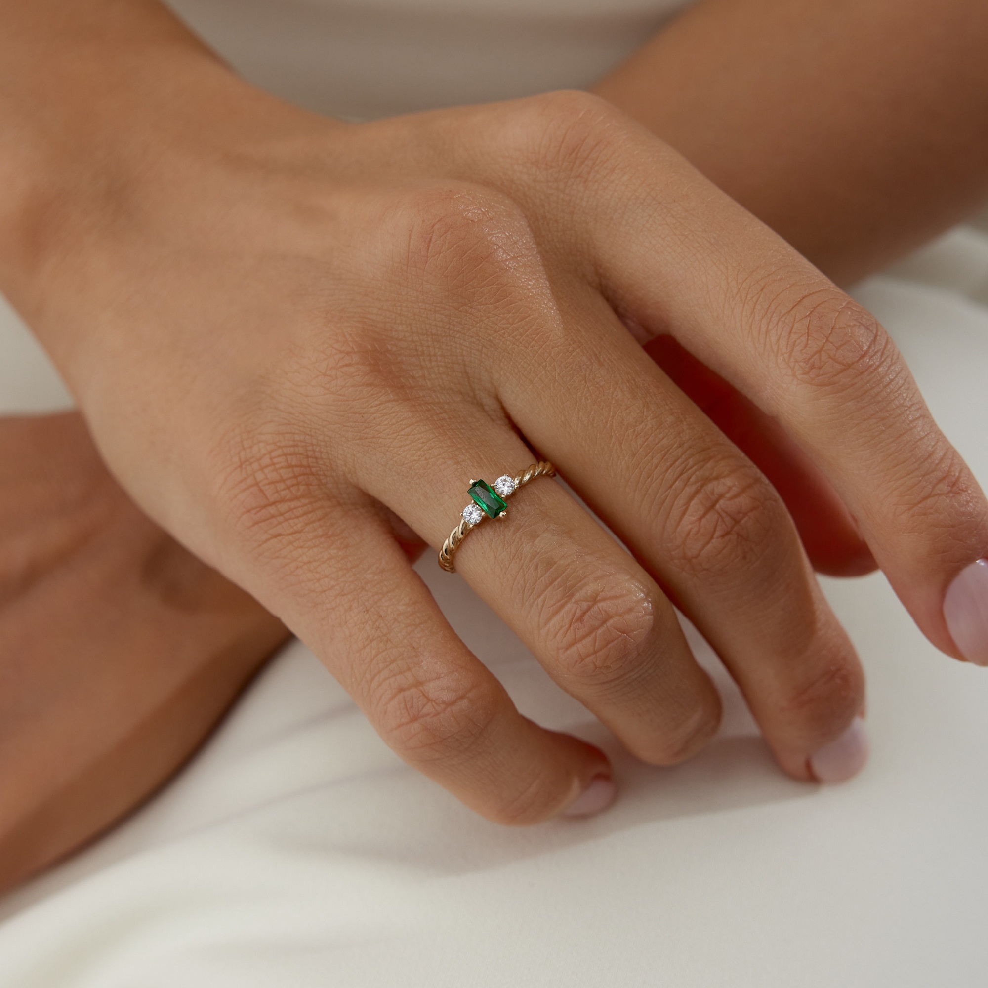 Geometrik Baget Yeşil Taşlı Altın Yüzük - Cemart Geometrik Baget Yeşil Taşlı Altın Yüzük - Cemart (1)