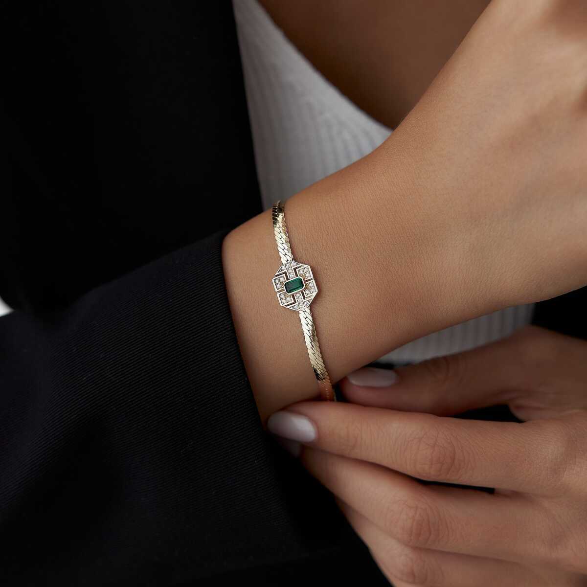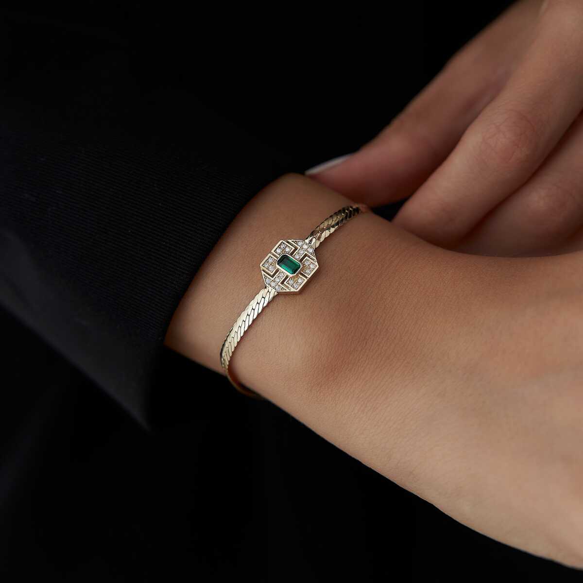 Halo Yeşil Taşlı Altın Bileklik