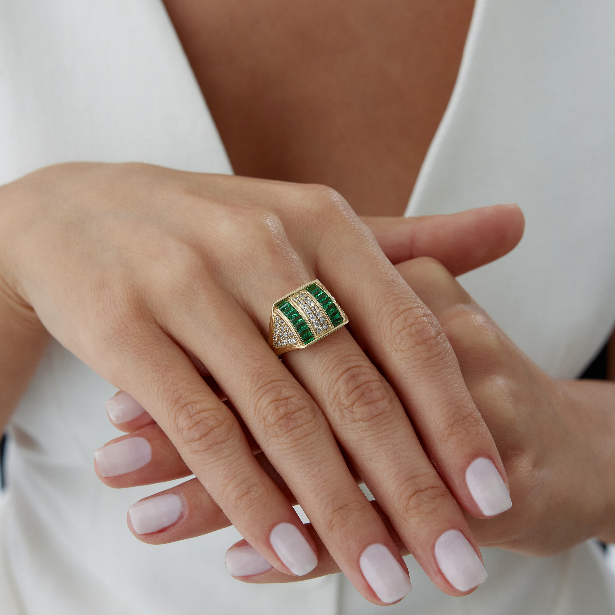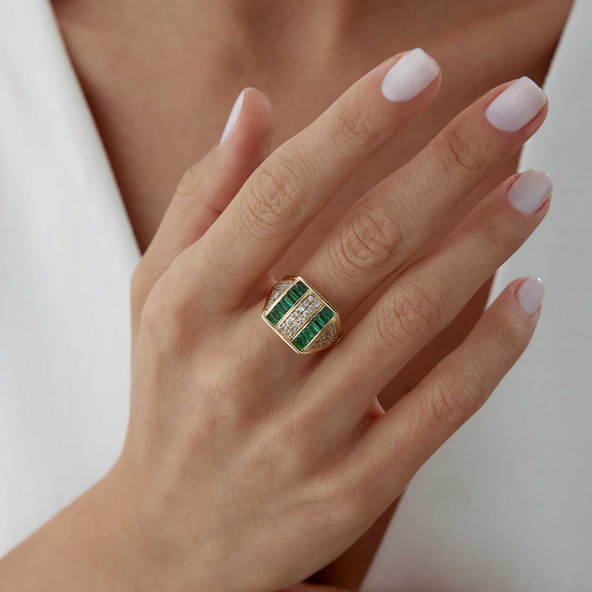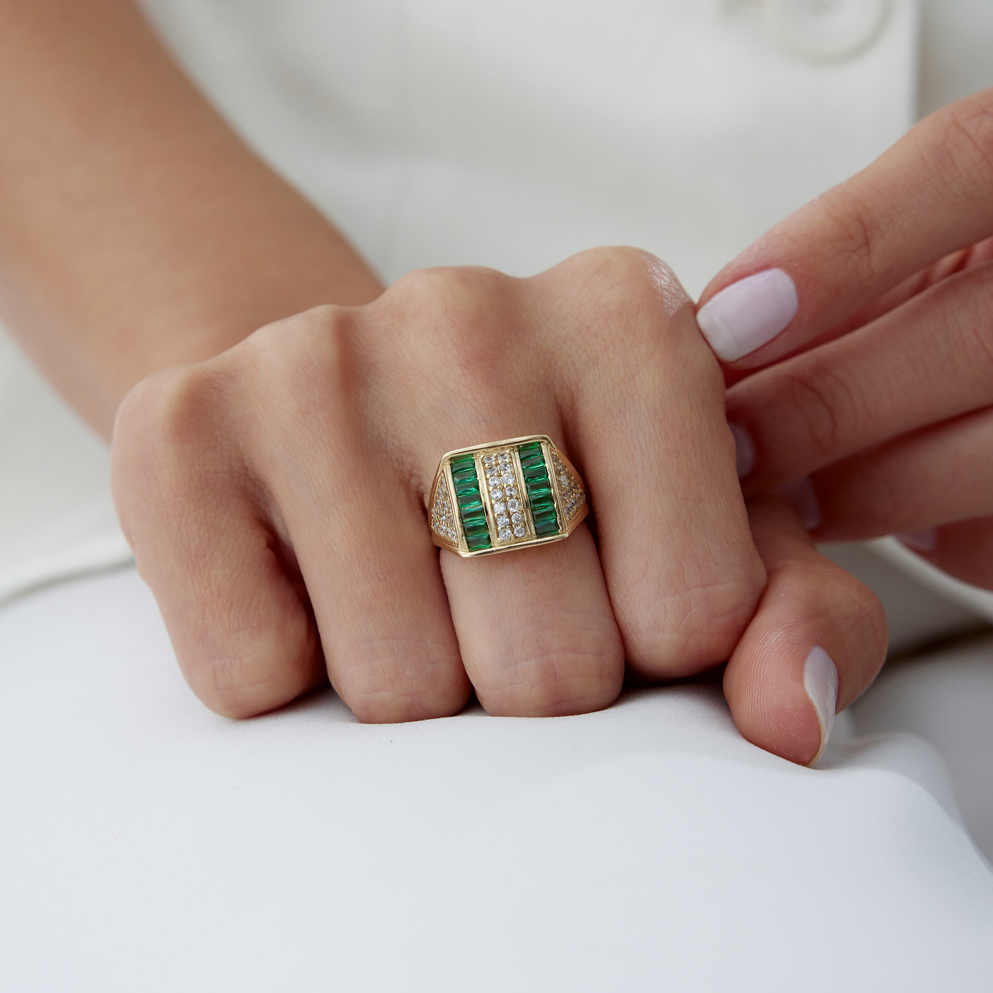 Geometrik Baget Yeşil Taşlı Altın Yüzük - Cemart Geometrik Baget Yeşil Taşlı Altın Yüzük - Cemart (1)