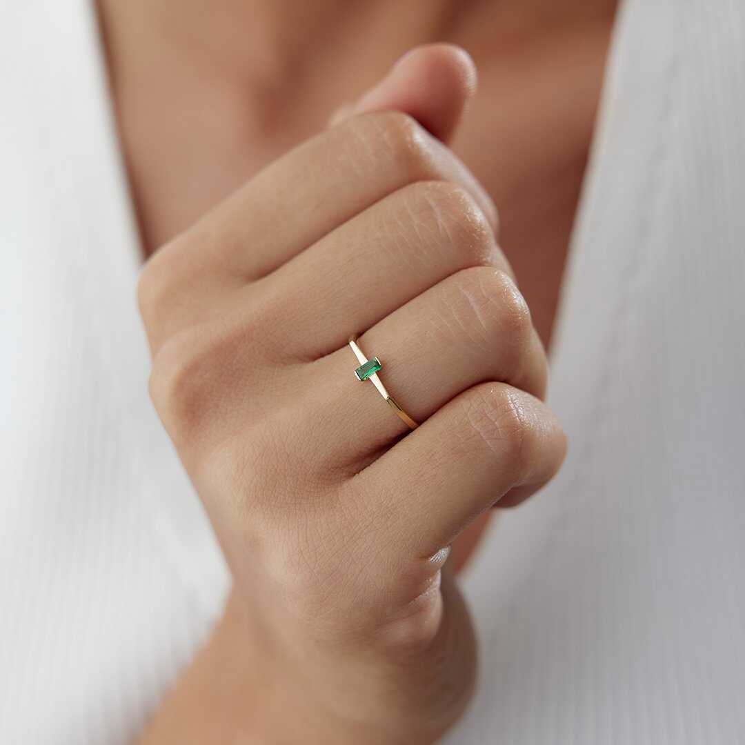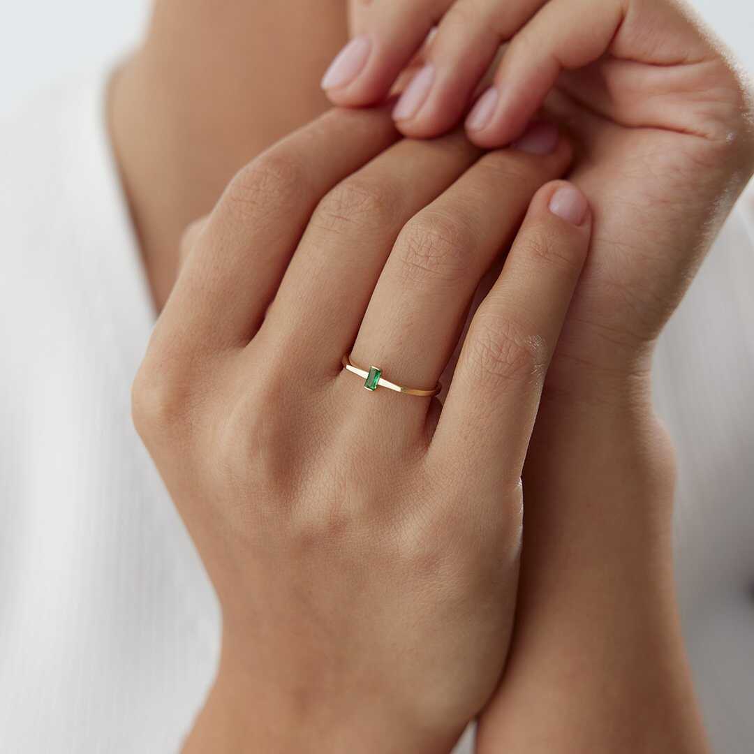 Geometrik Baget Yeşil Taşlı Altın Yüzük - Cemart Geometrik Baget Yeşil Taşlı Altın Yüzük - Cemart (1)