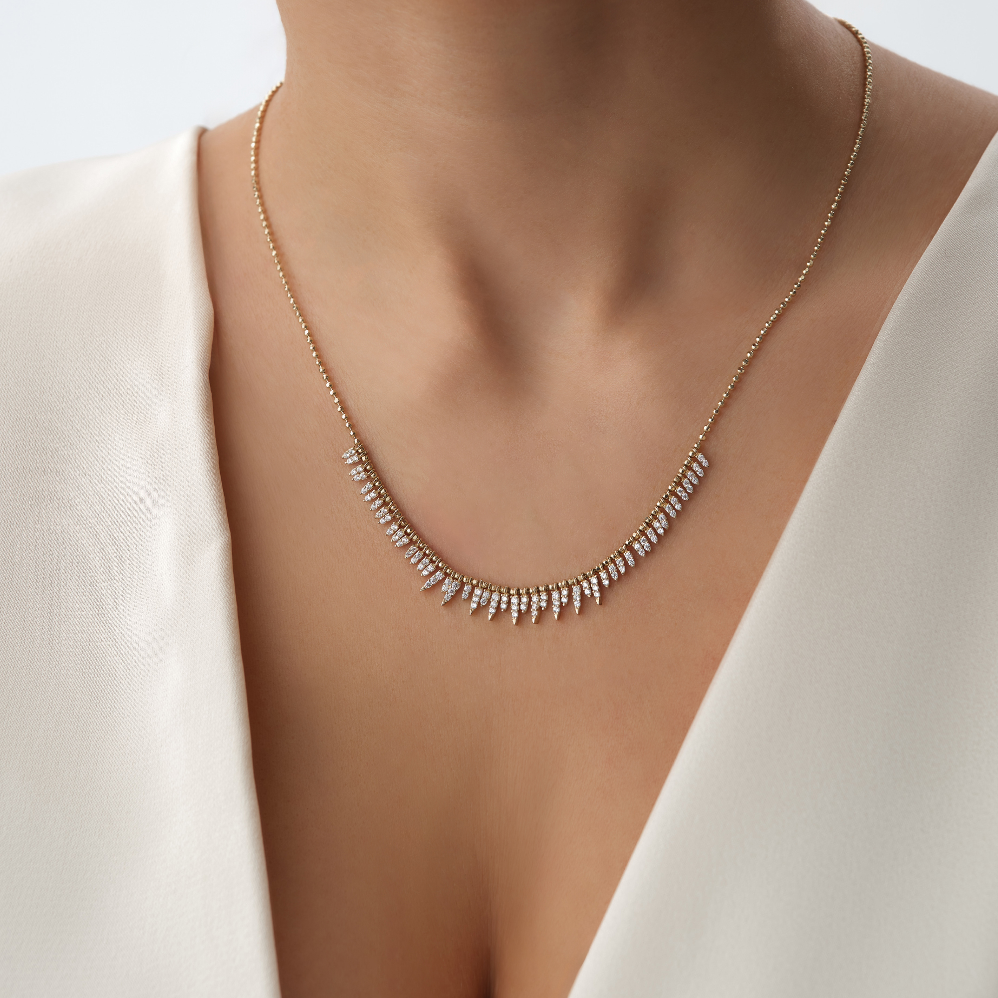Katmanlı V Model Sıra Taşlı Altın Kolye