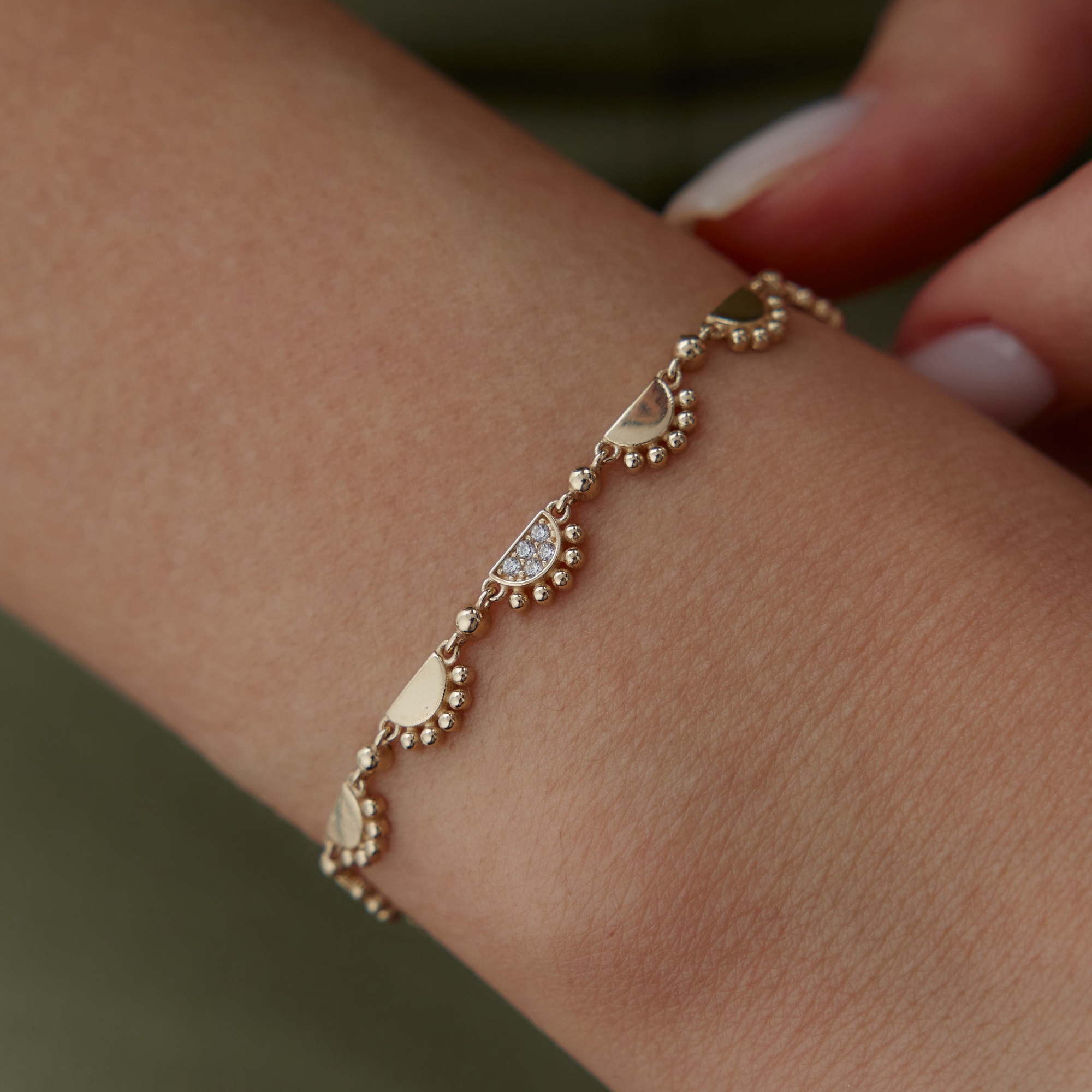 Taşlı Damla Form Altın Bileklik