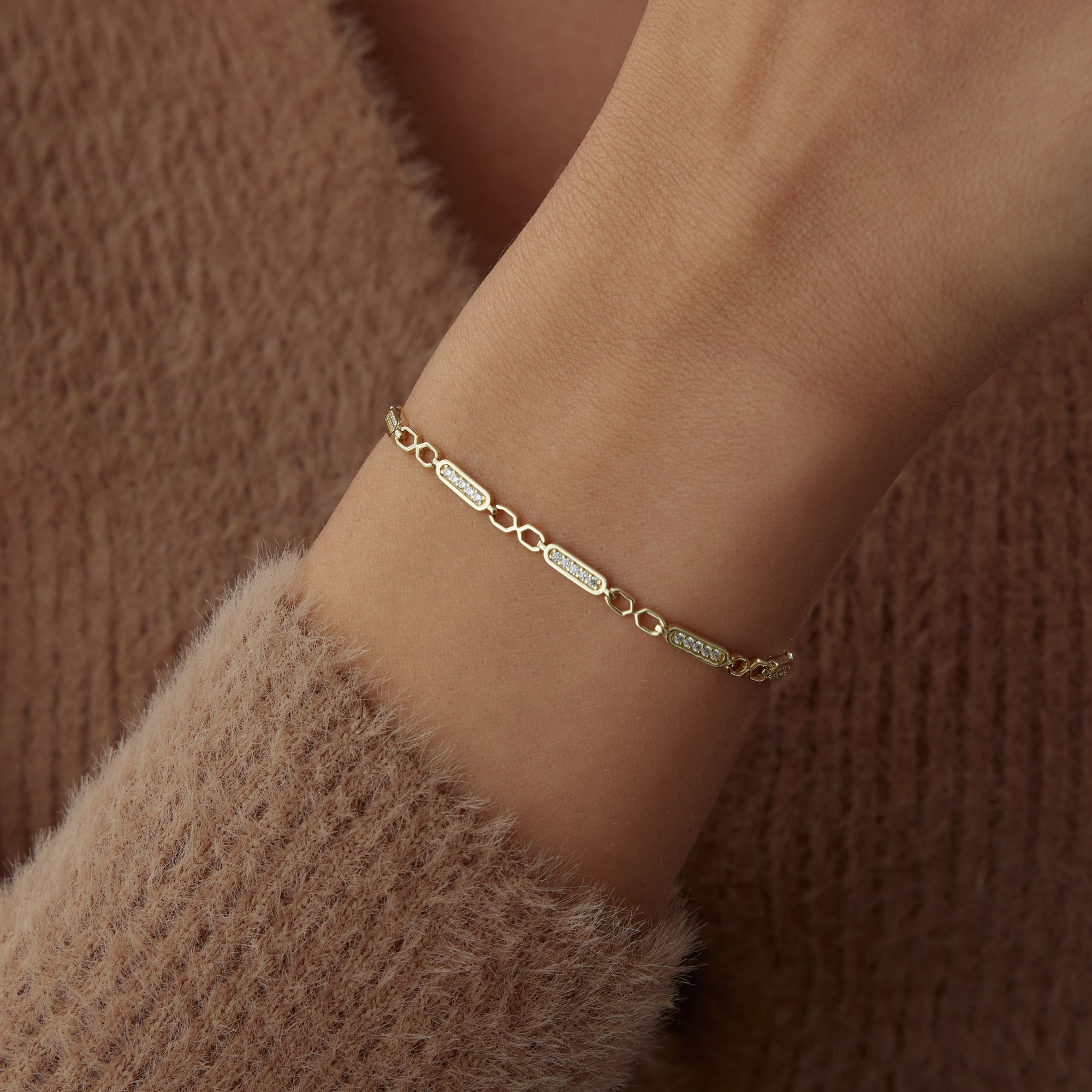 Geometrik Blok Taşlı Altın Bileklik