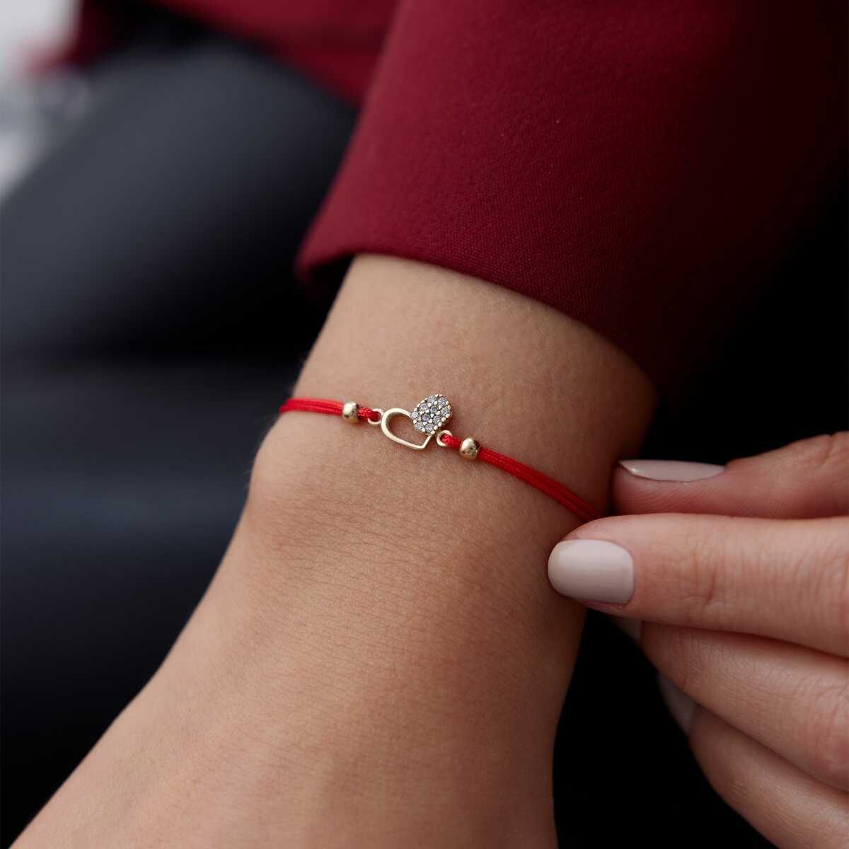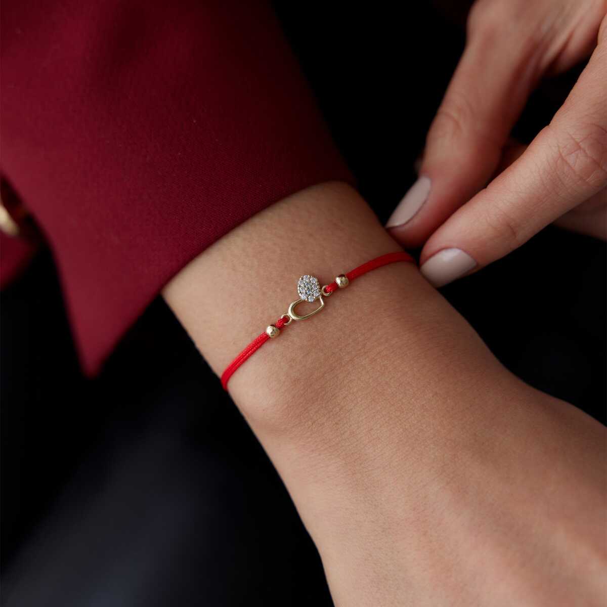 Altın Küp Detaylı Kırmızı İp Bileklik