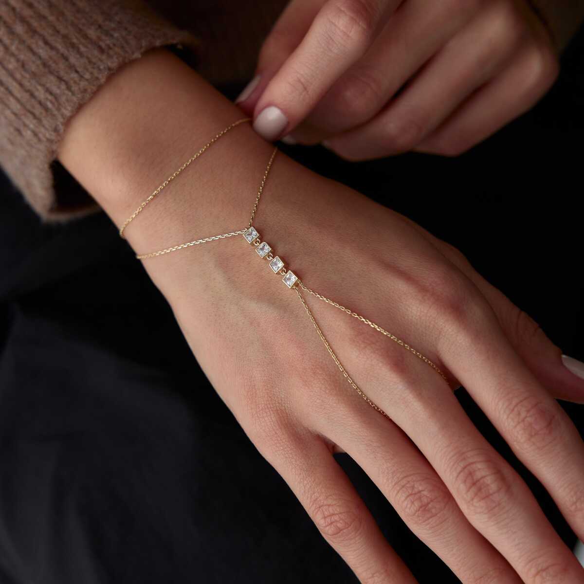 Kare Taşlı 14 Ayar Kadın Altın Şahmeran - 1
