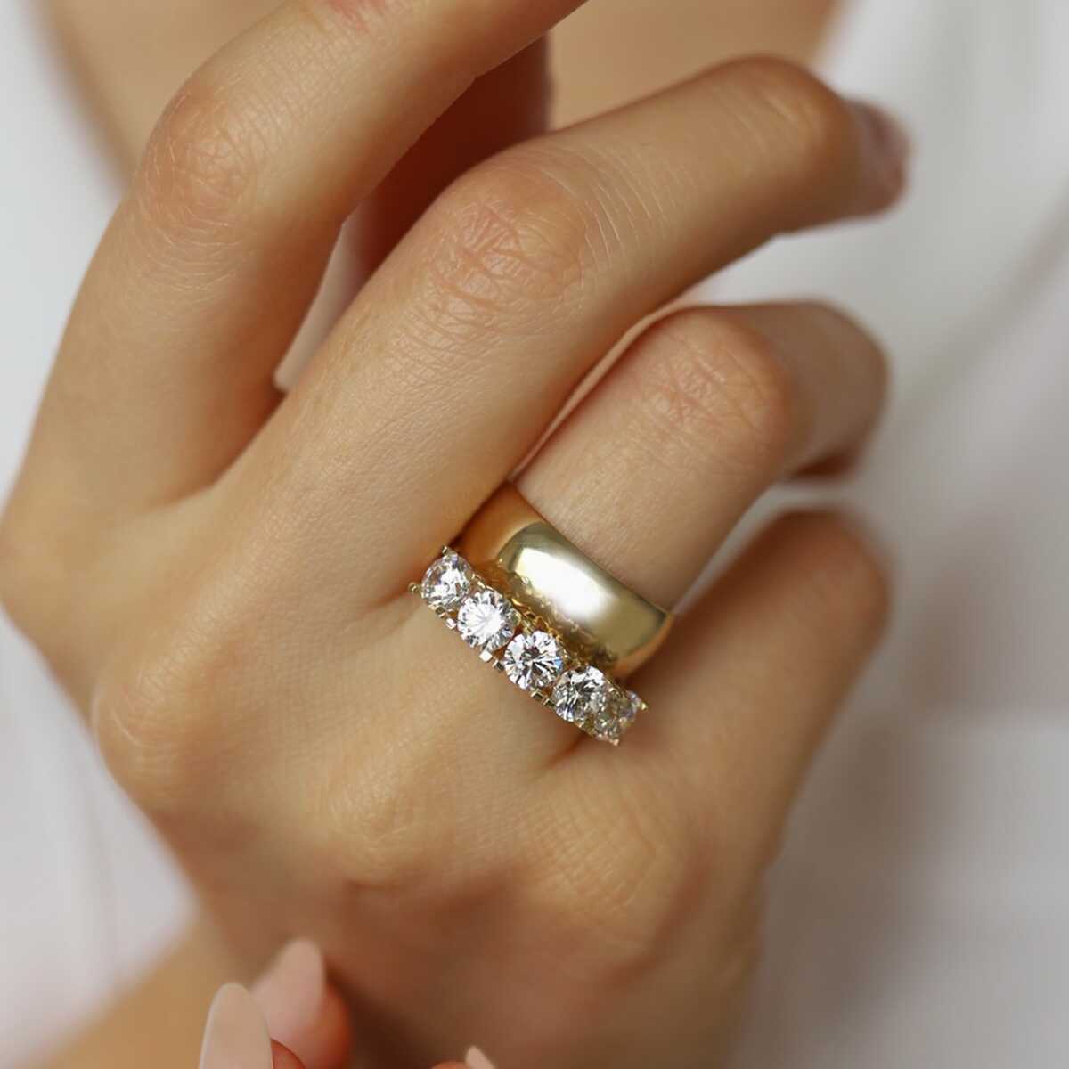 Üç Sıra Taşlı Tektaş Yüzük