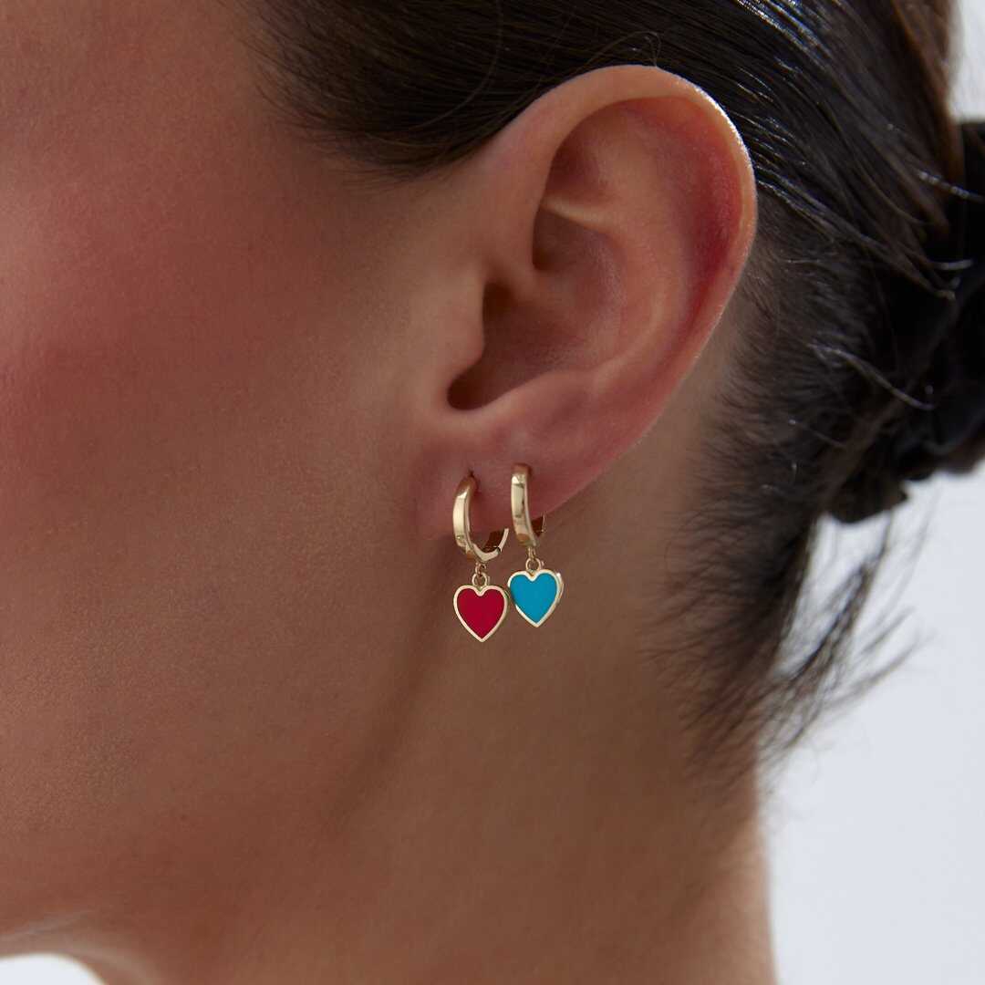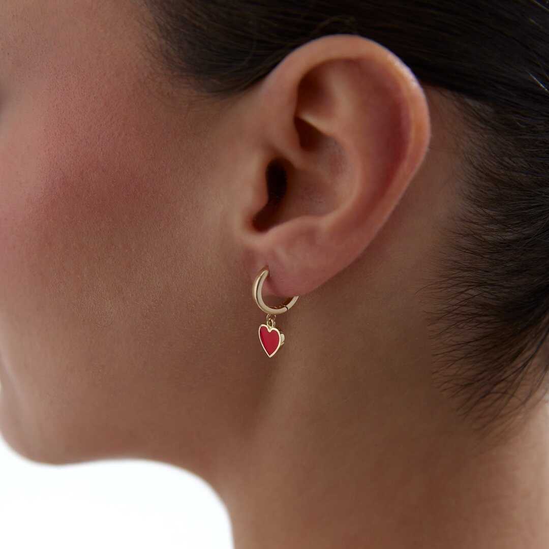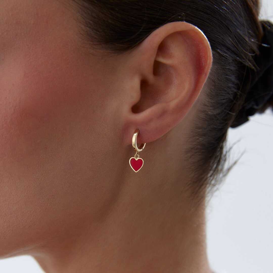 Kırmızı Kalp Sallantılı Küpe