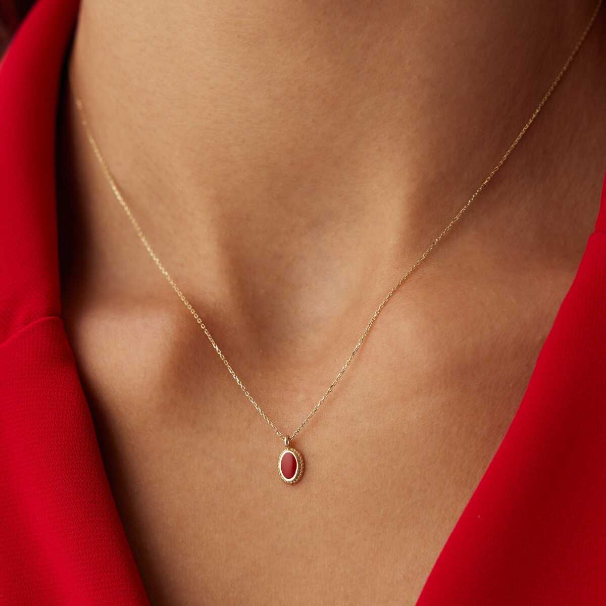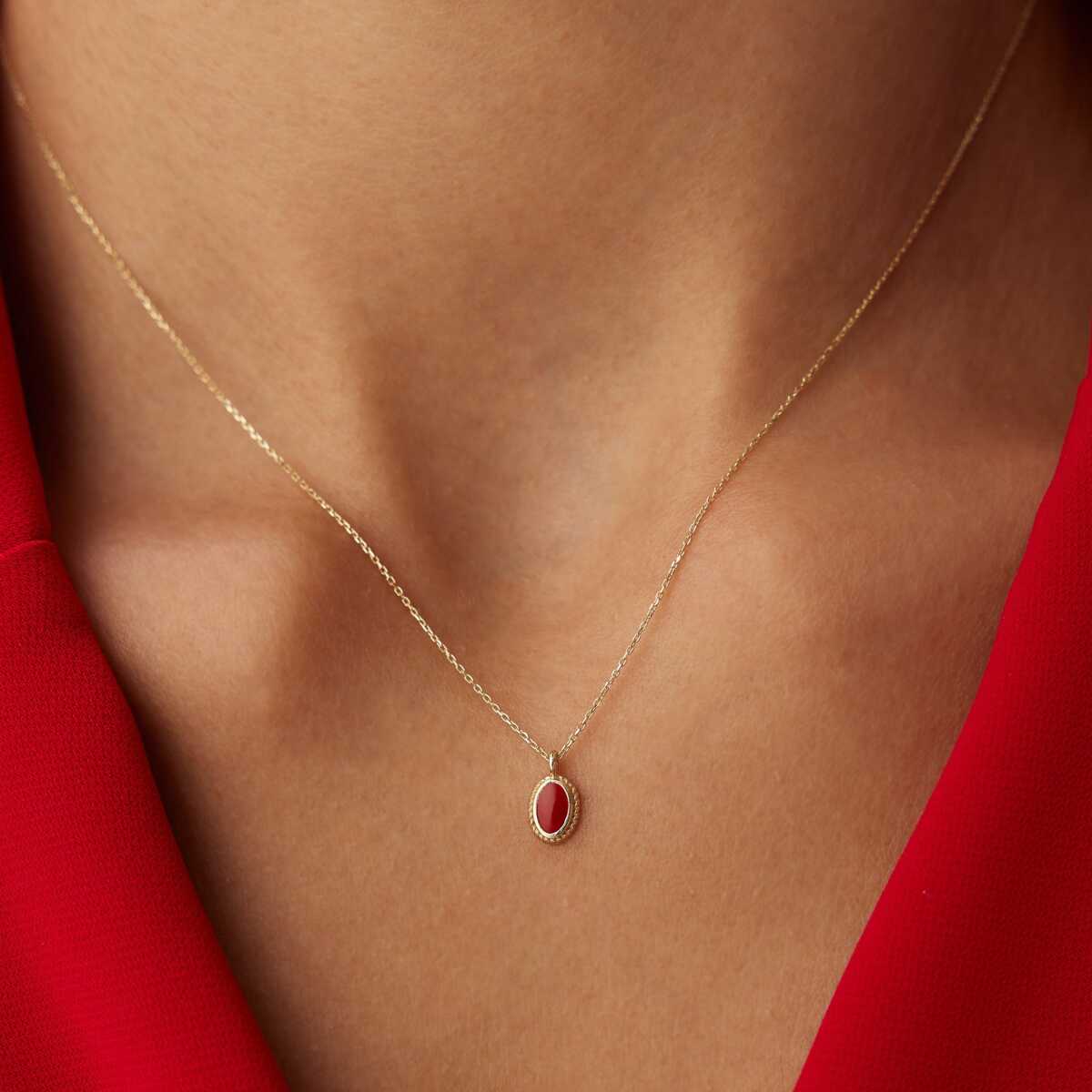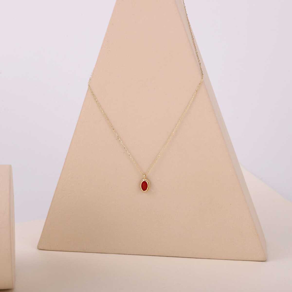 Kırmızı Mineli Vintage Kolye