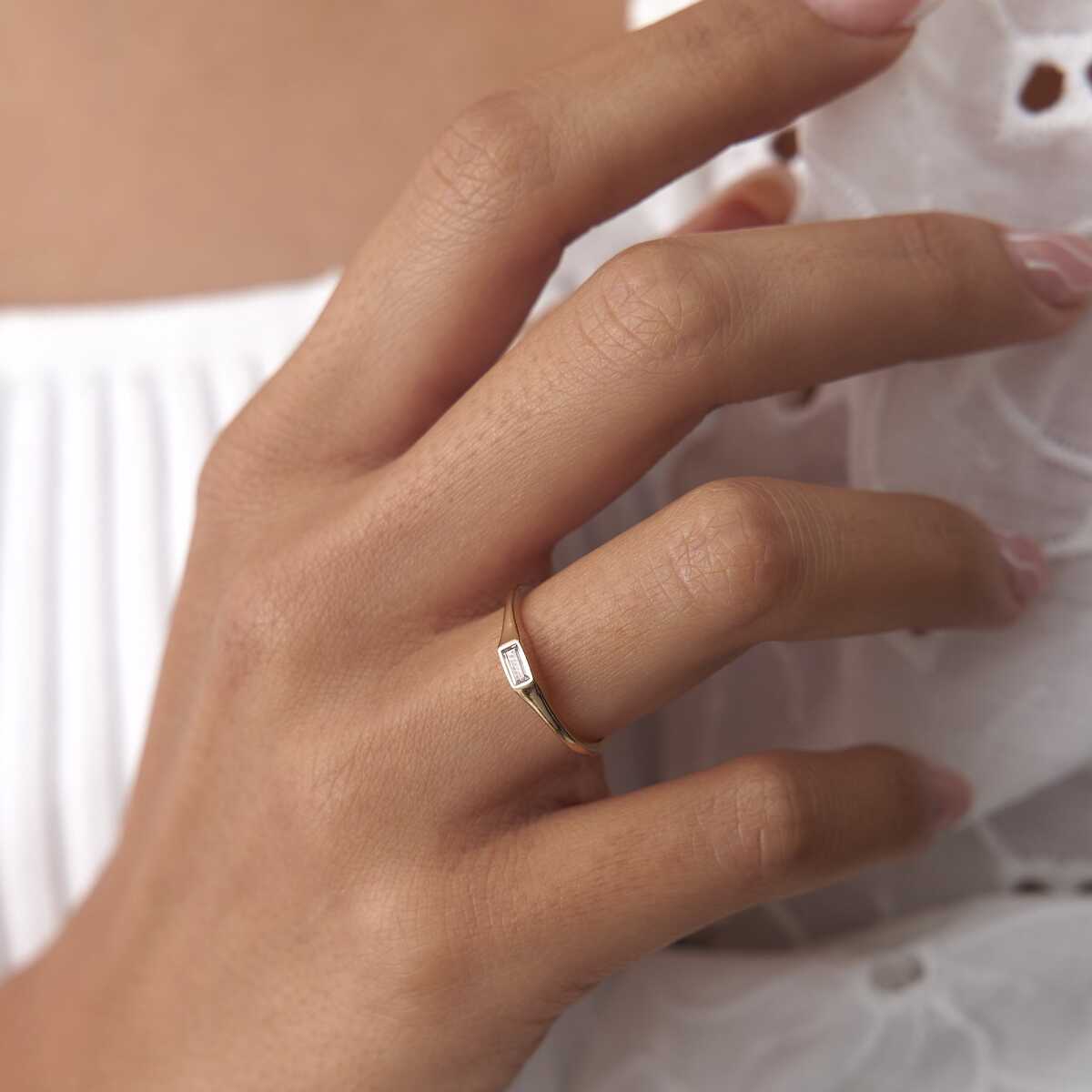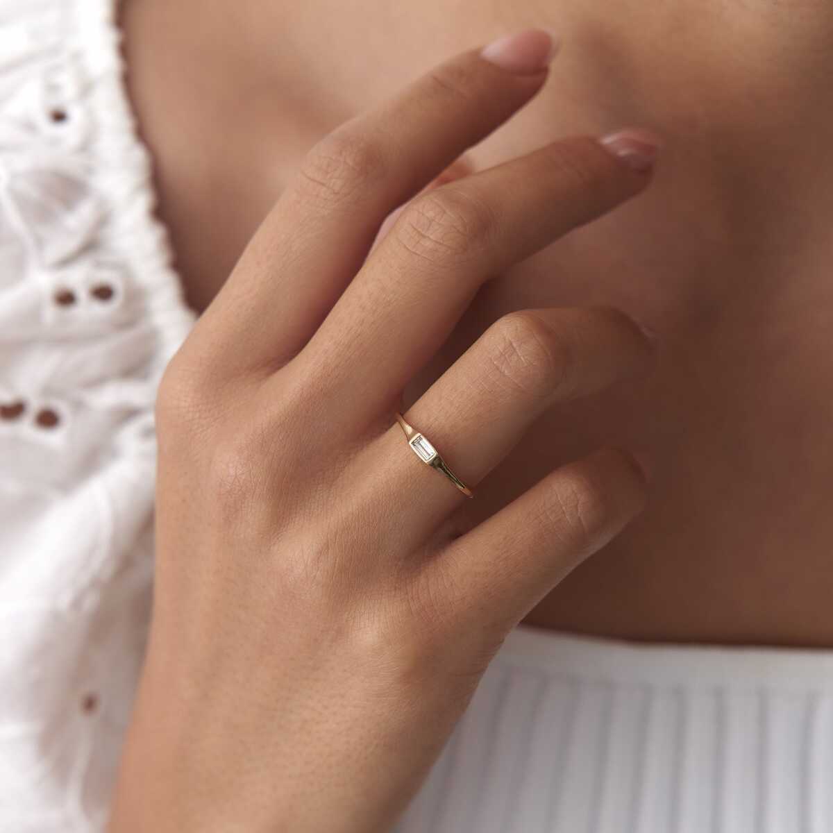 Minimal Baget Taşlı İnce Altın Yüzük - Cemart Minimal Baget Taşlı İnce Altın Yüzük - Cemart (1)