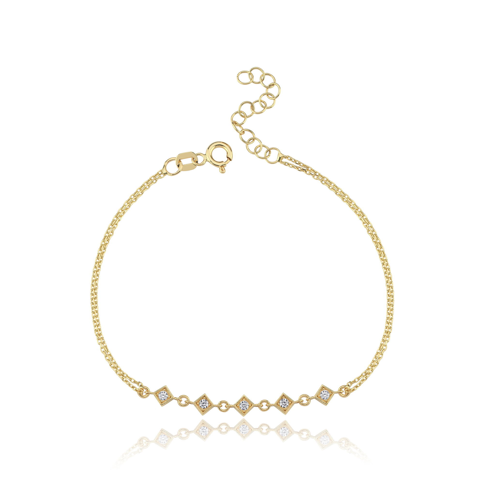 Üçlü Taş Geçişli Altın Bileklik