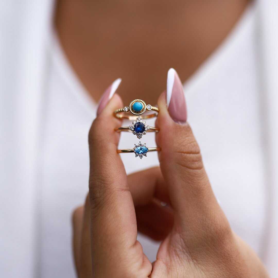 Point Kalp Yüzük - Mavi Tuna Point Kalp Yüzük - Mavi Tuna (1)