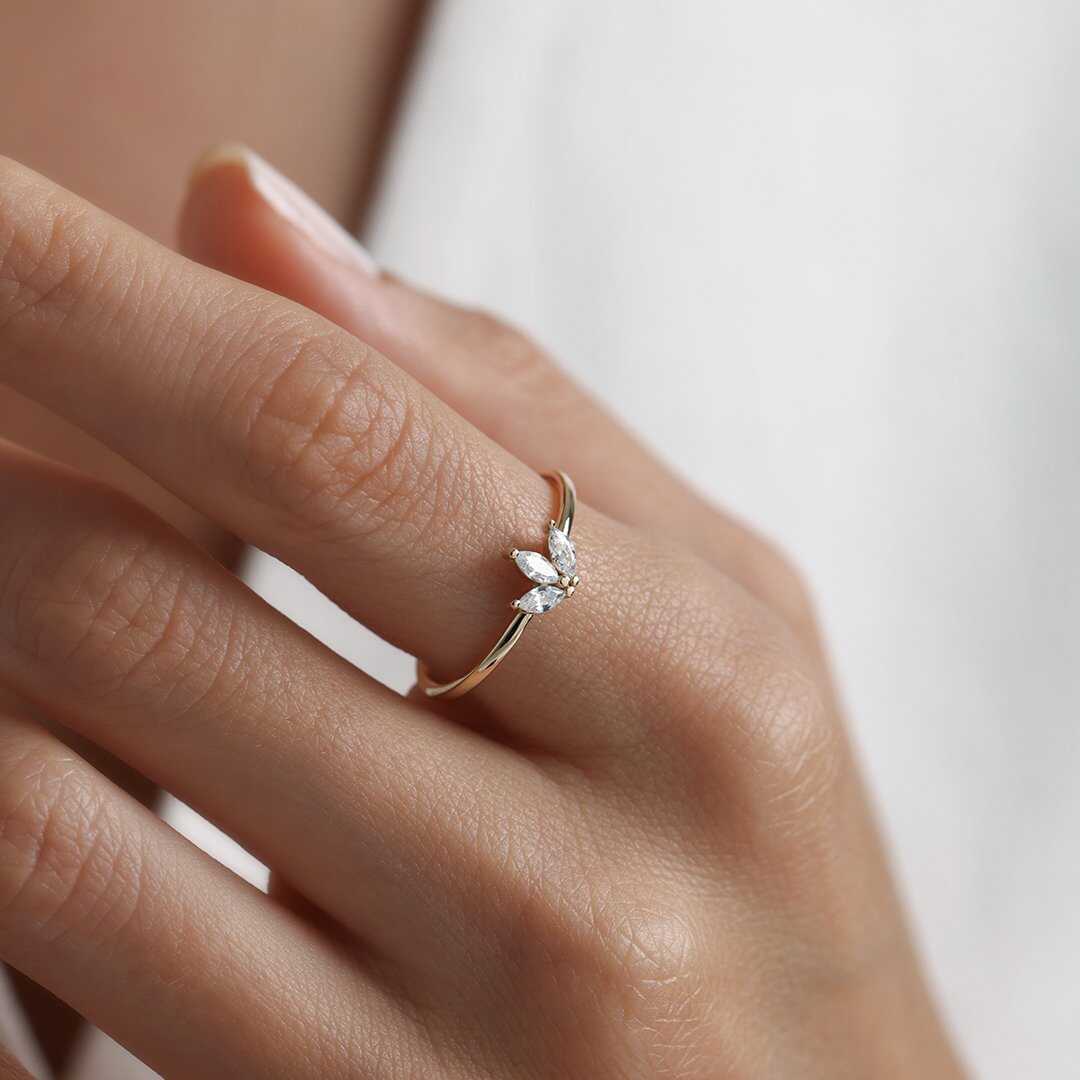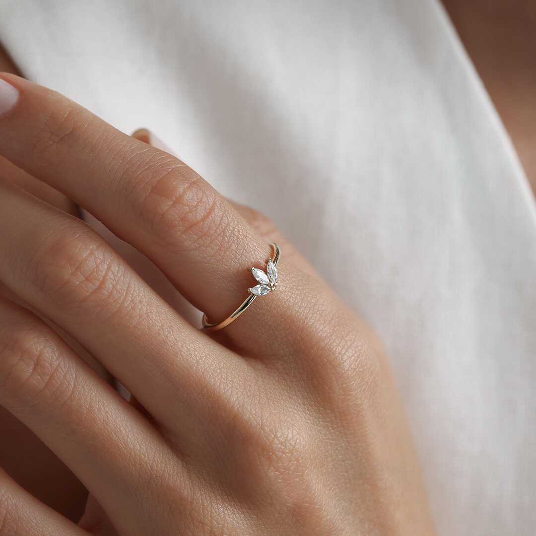 Mekik Kesim Taşlı Minimal Altın Yüzük - Arden Mekik Kesim Taşlı Minimal Altın Yüzük - Arden (1)