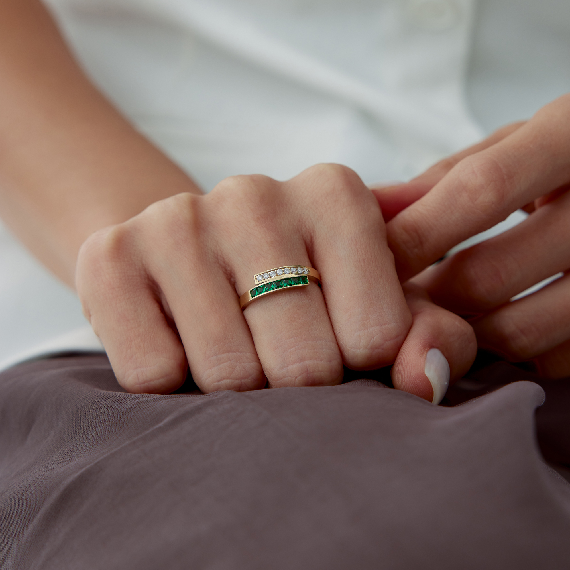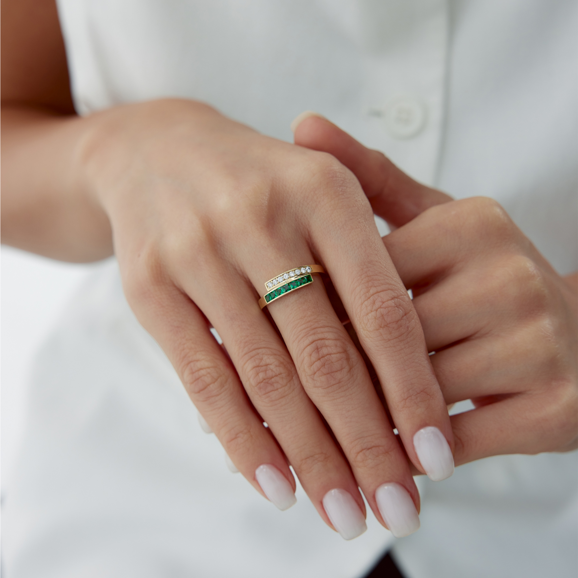 Geometrik Baget Yeşil Taşlı Altın Yüzük - Cemart Geometrik Baget Yeşil Taşlı Altın Yüzük - Cemart (1)