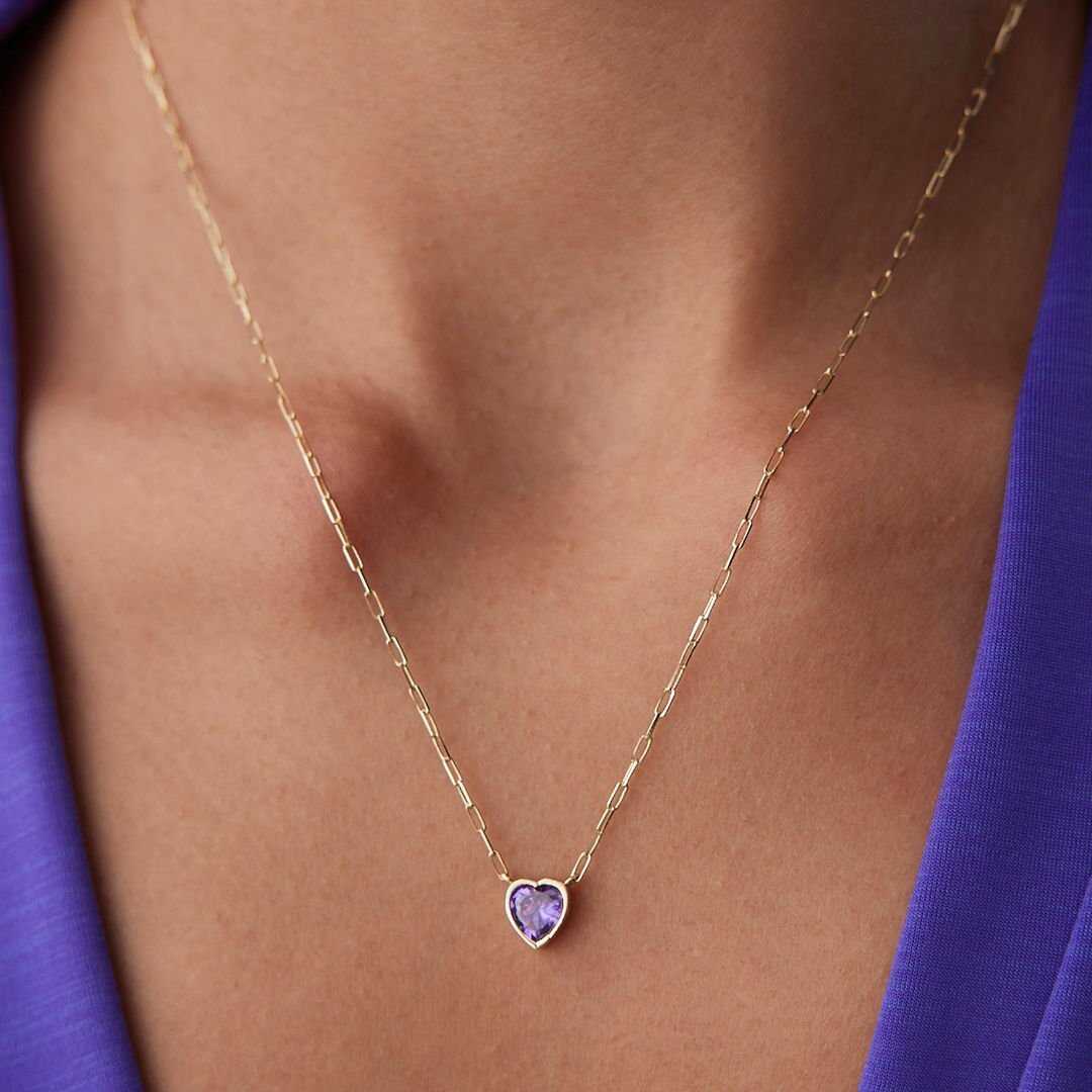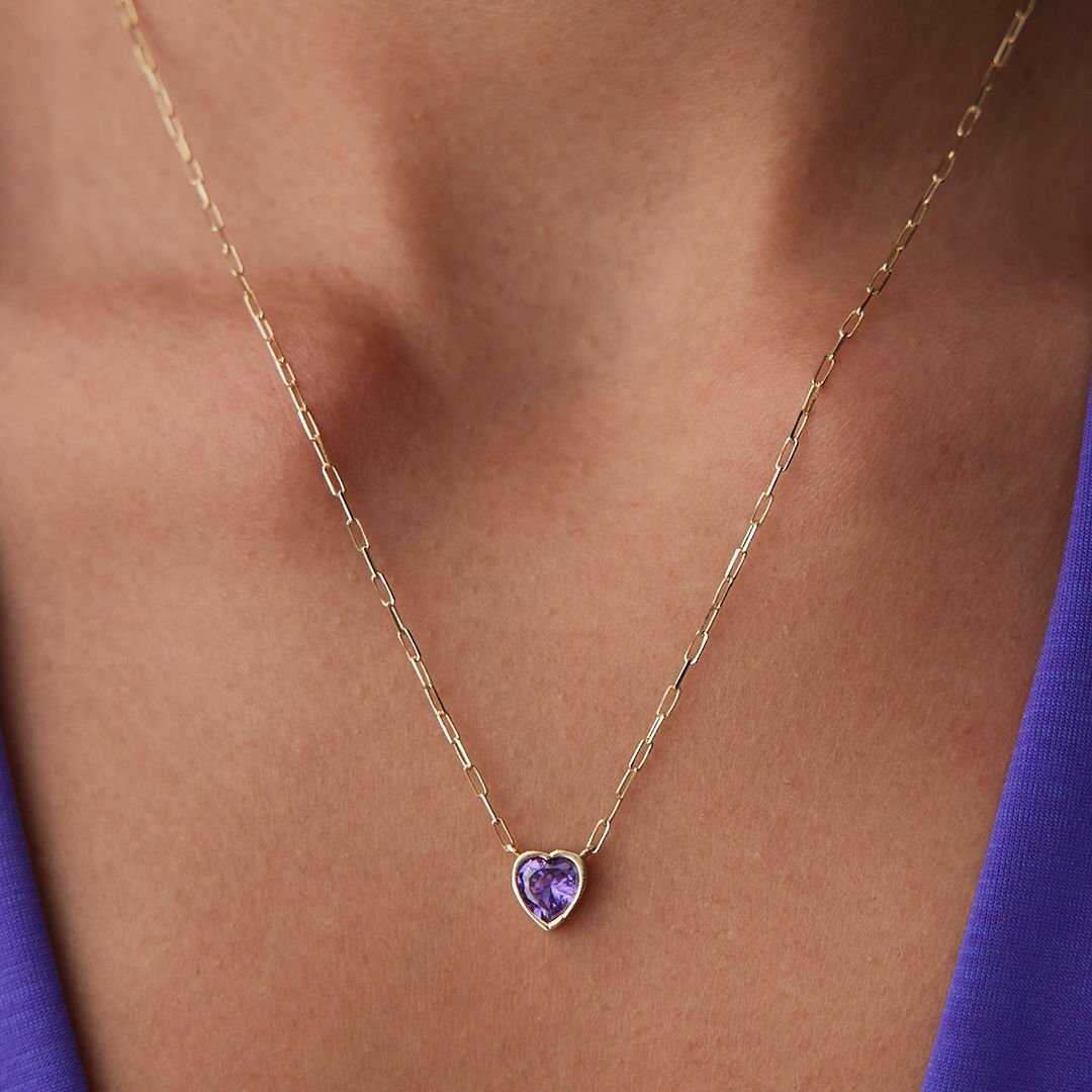 Mini Ataç Mor Kalp Kolye