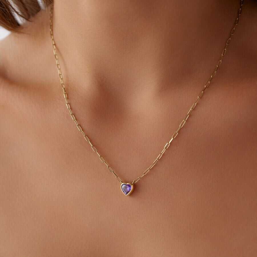 Kalp Detaylı Taşlı Kolye - Alen Kalp Detaylı Taşlı Kolye - Alen (1)
