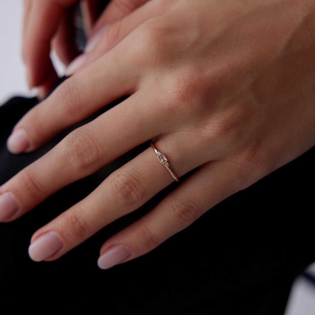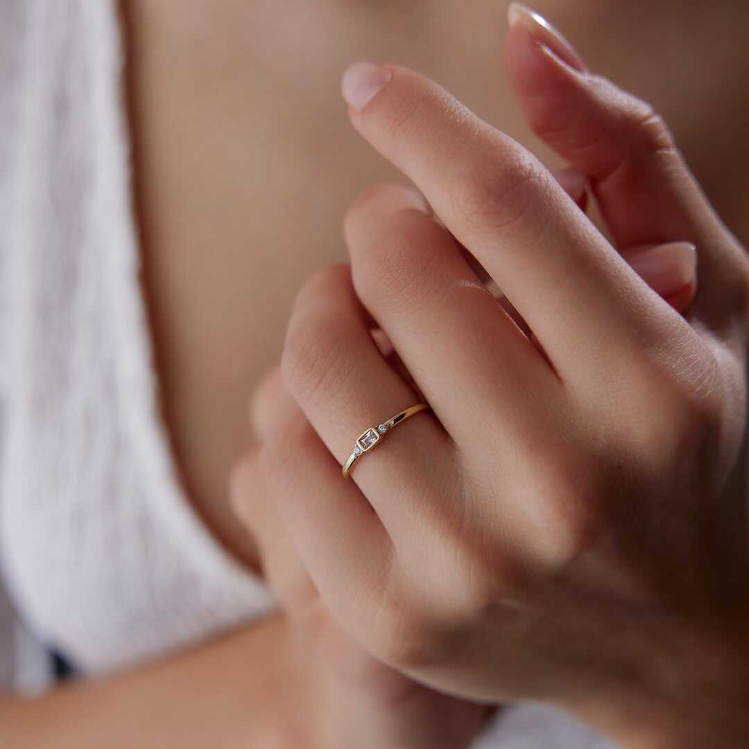 Minimal Baget Taşlı İnce Altın Yüzük - Cemart Minimal Baget Taşlı İnce Altın Yüzük - Cemart (1)