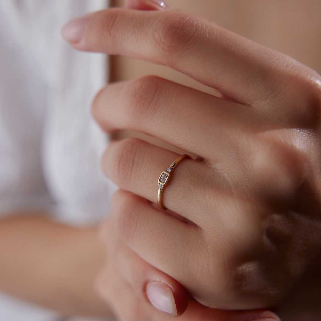 Mekik Kesim Taşlı Minimal Altın Yüzük - Arden Mekik Kesim Taşlı Minimal Altın Yüzük - Arden (1)