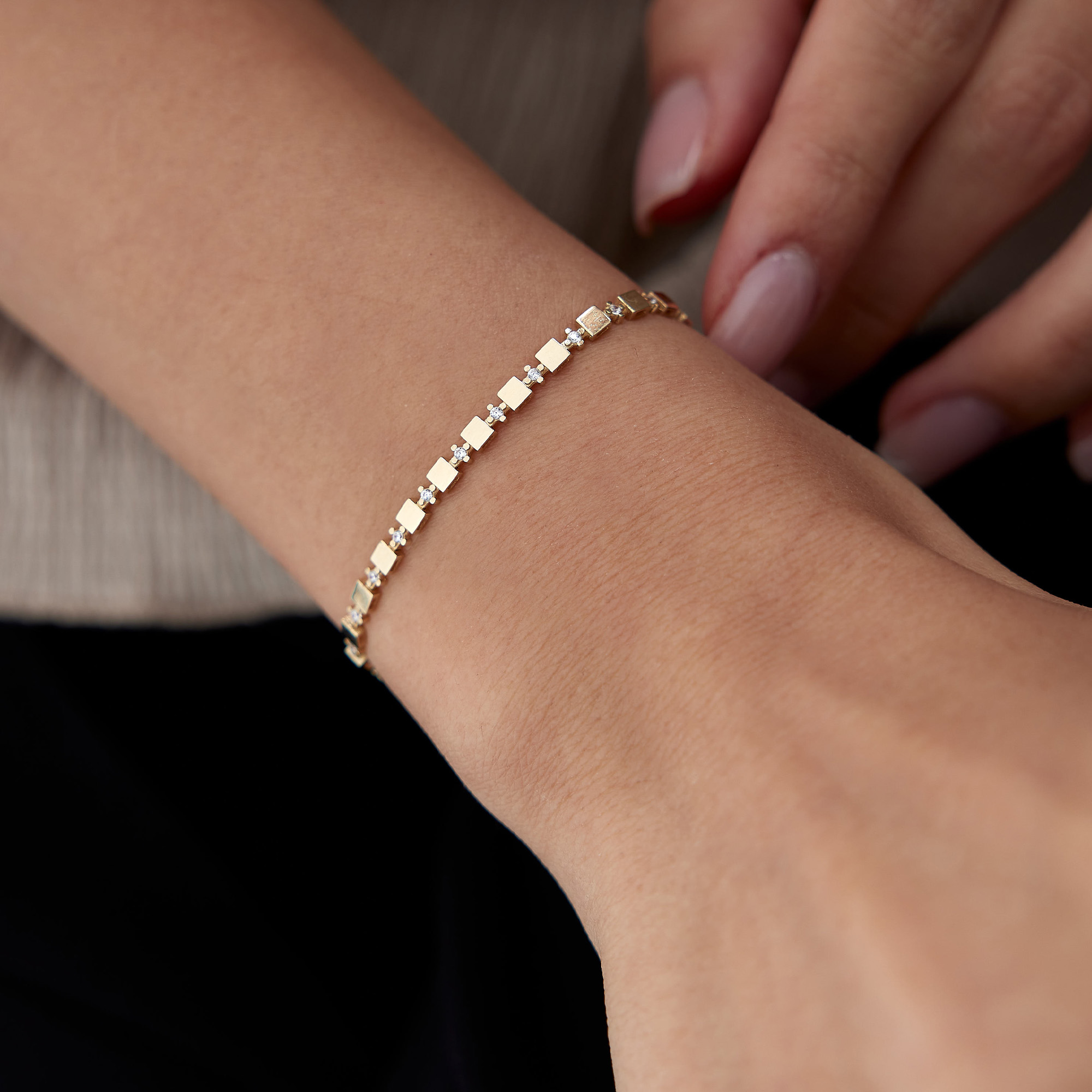 Geometrik Oval Taşlı Altın Bileklik