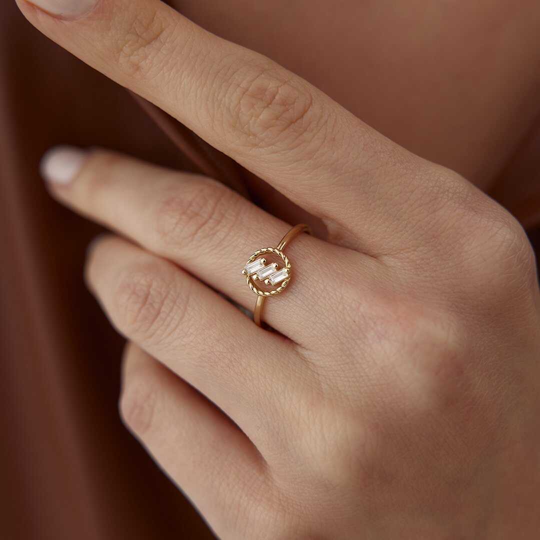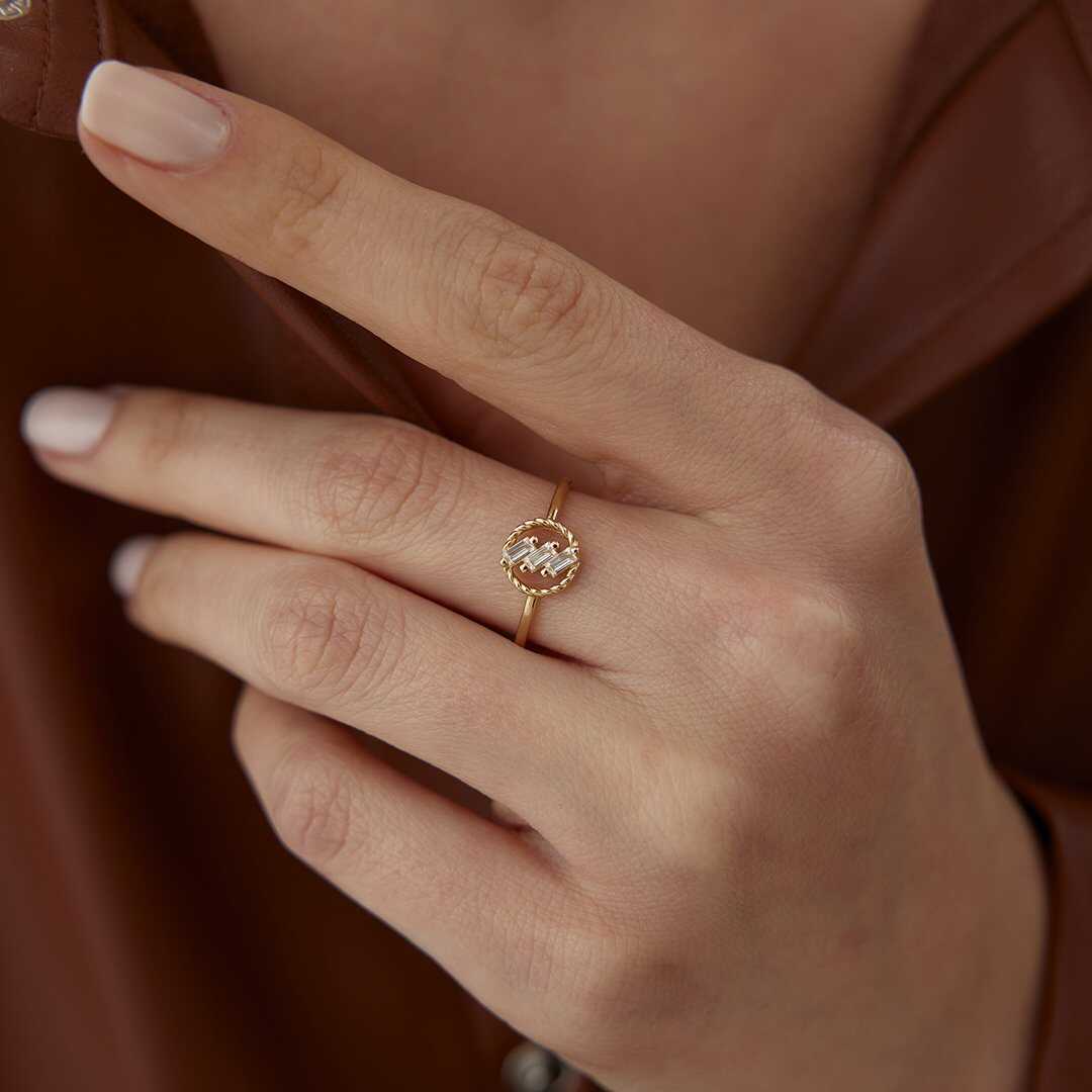 Minimal Baget Taşlı İnce Altın Yüzük - Cemart Minimal Baget Taşlı İnce Altın Yüzük - Cemart (1)