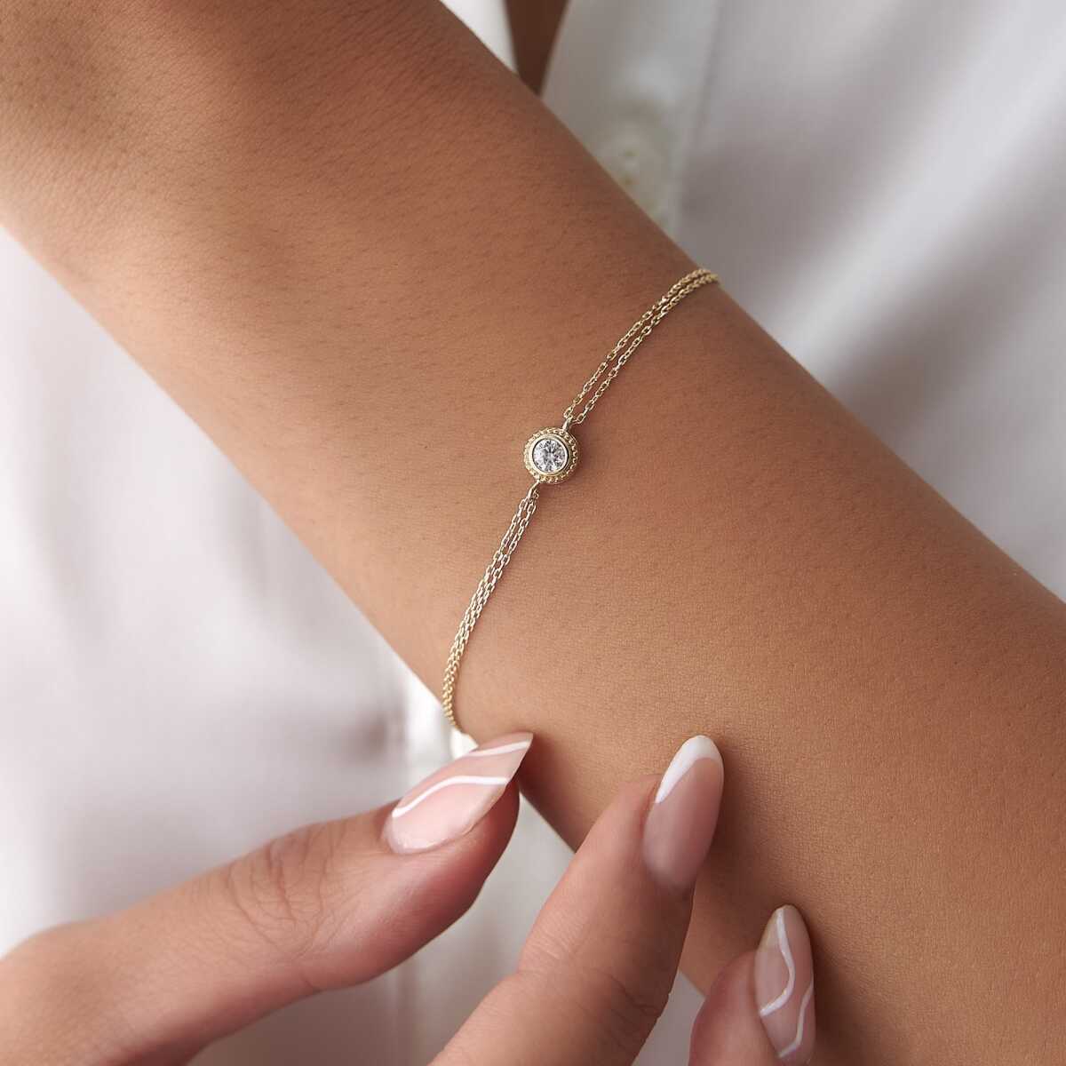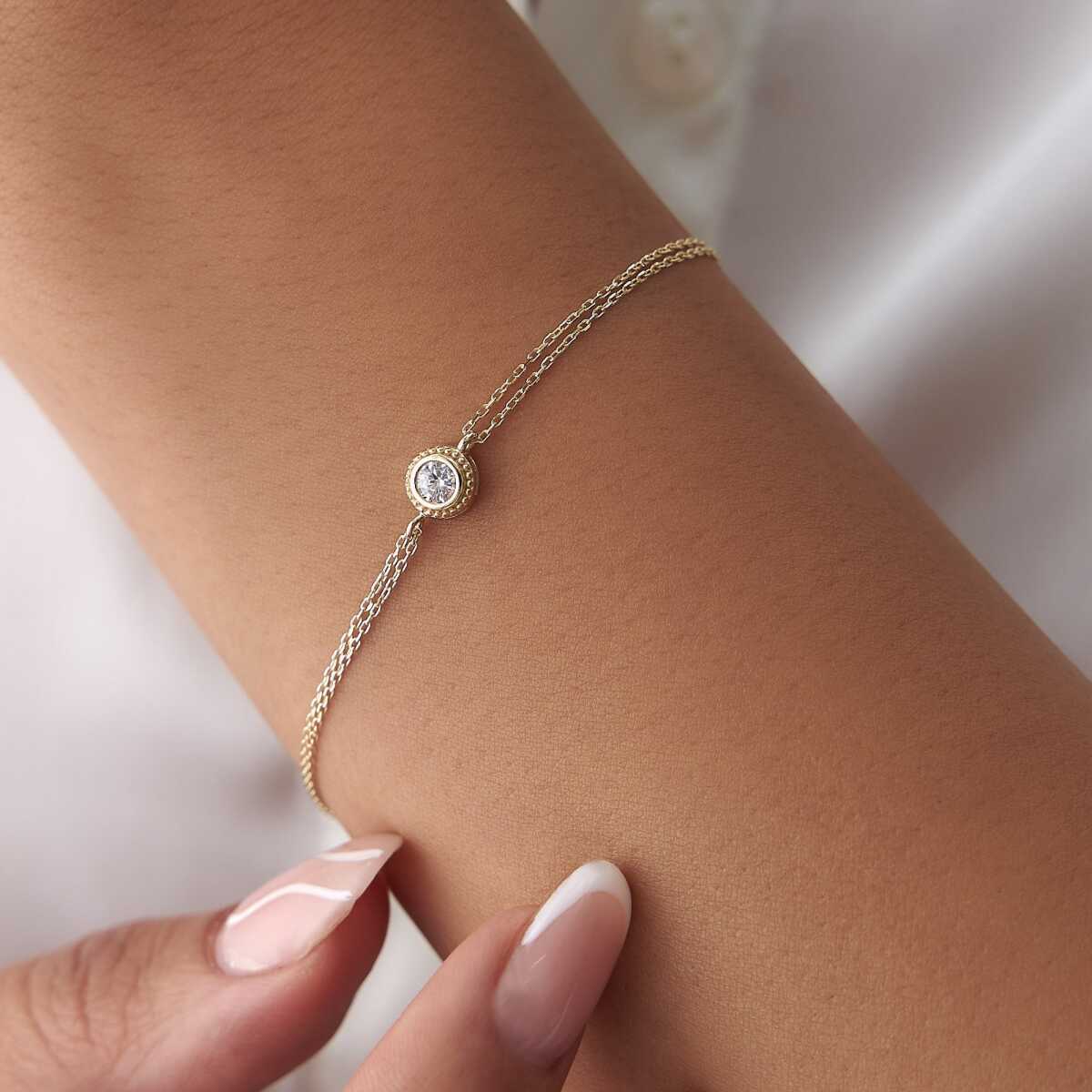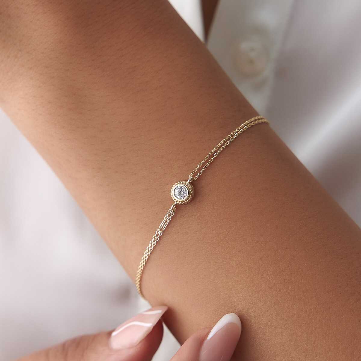 Üçlü Taş Geçişli Altın Bileklik - Garo Üçlü Taş Geçişli Altın Bileklik - Garo (1)