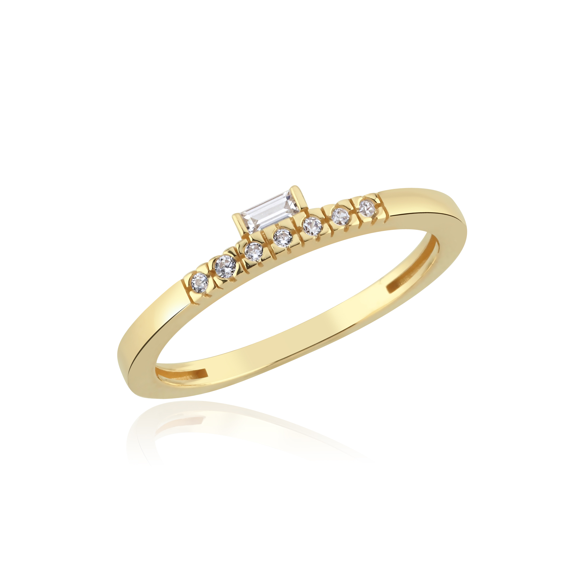 Işıltılı Minimal Sıralı Taşlı Altın Yüzük