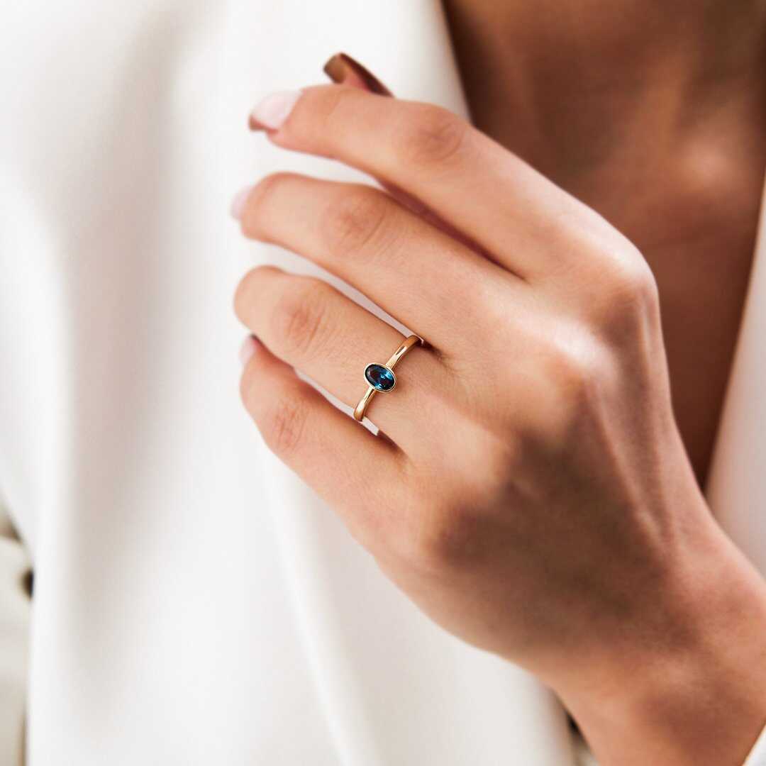 Oval Lacivert Yüzük