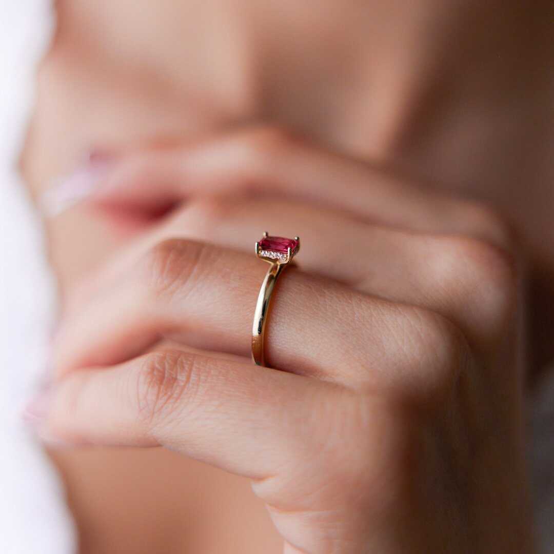 Oval Kırmızı Taşlı Geometrik Altın Yüzük - Cemart Oval Kırmızı Taşlı Geometrik Altın Yüzük - Cemart (1)