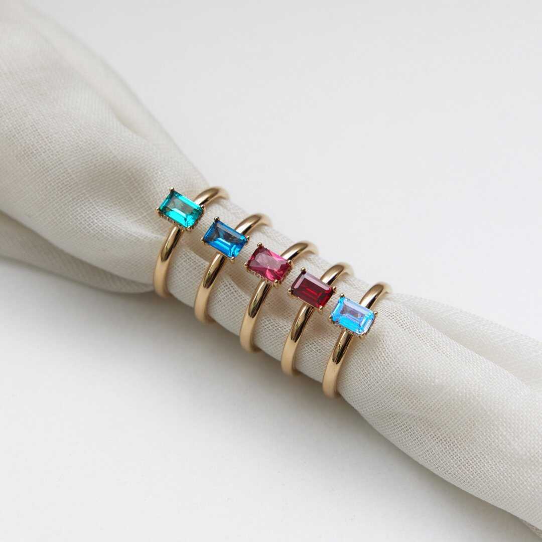 Geometrik Baget Yeşil Taşlı Altın Yüzük - Cemart Geometrik Baget Yeşil Taşlı Altın Yüzük - Cemart (1)