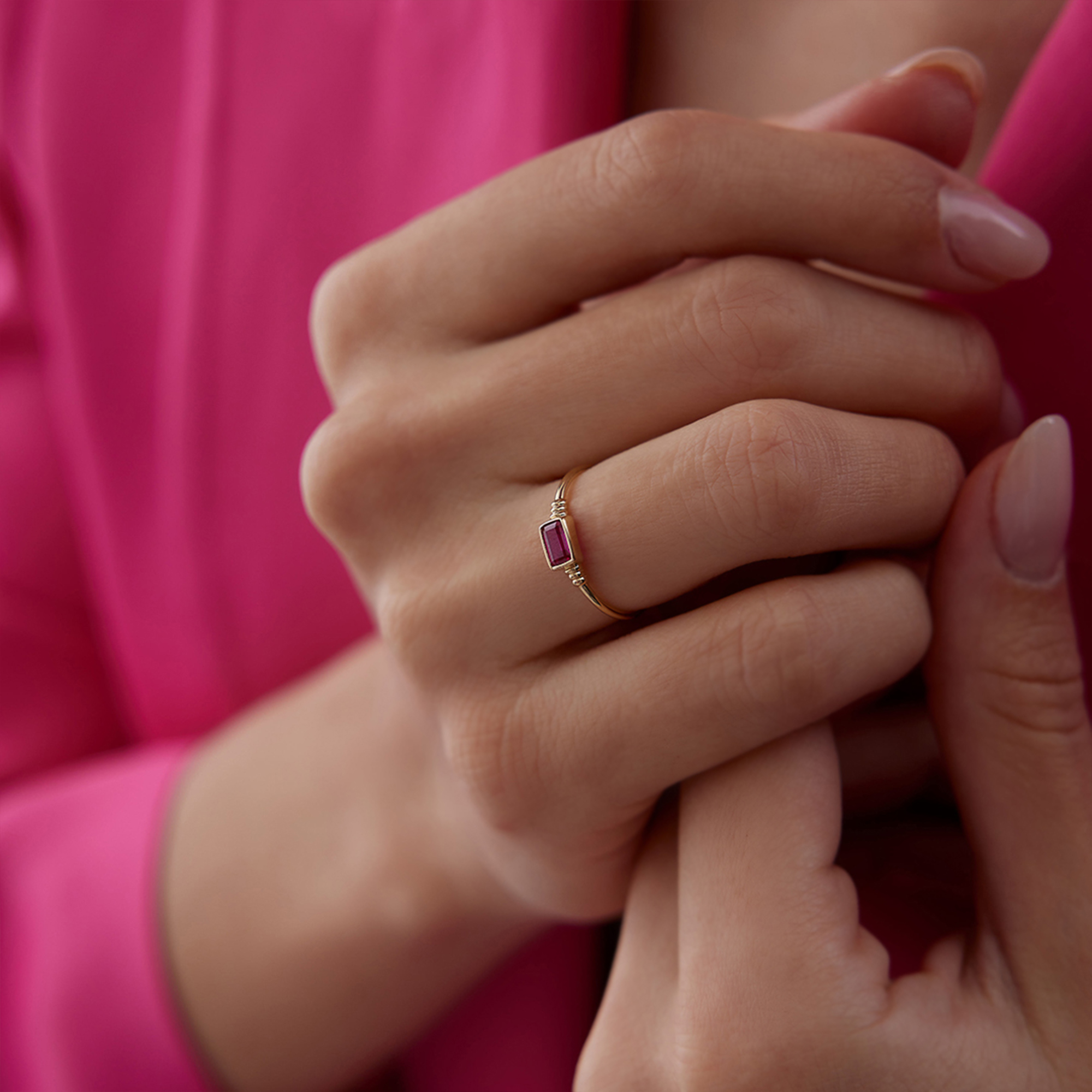 Oval Kırmızı Taşlı Geometrik Altın Yüzük - Cemart Oval Kırmızı Taşlı Geometrik Altın Yüzük - Cemart (1)
