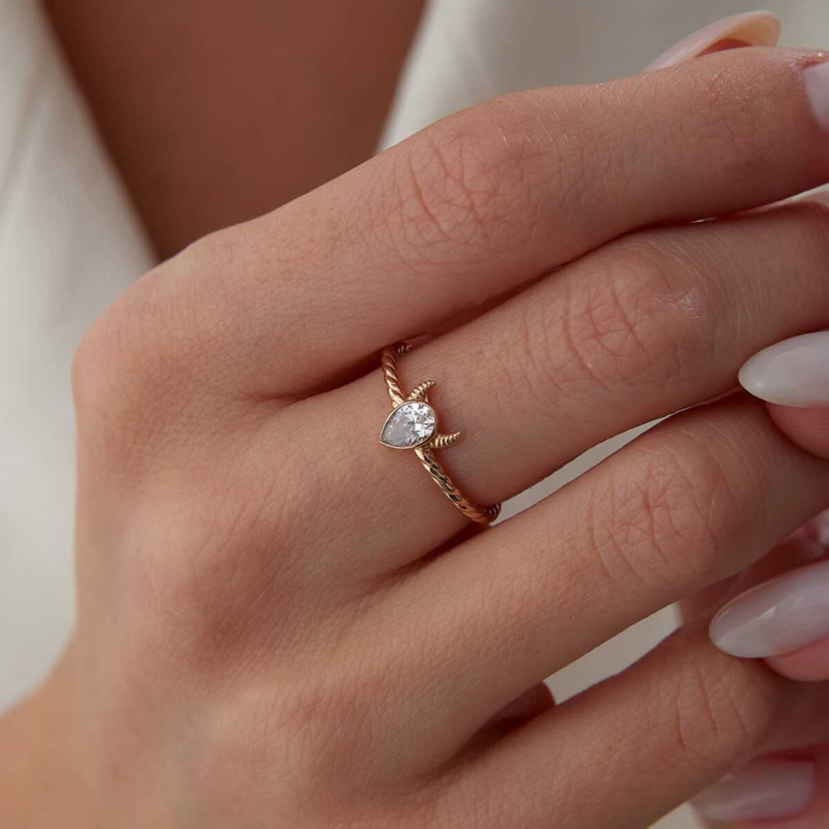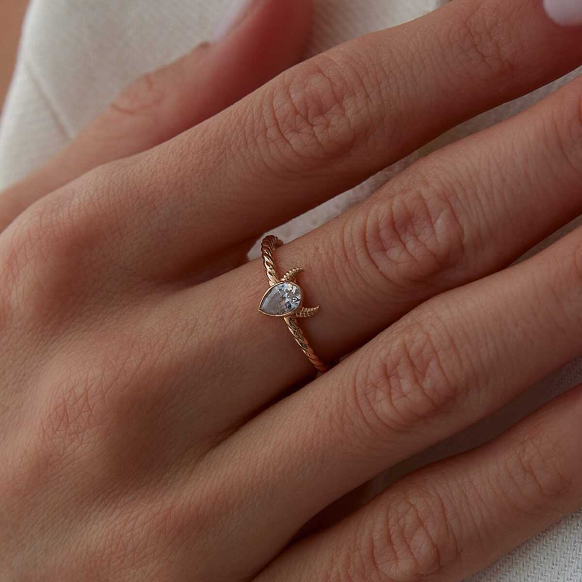 Mekik Kesim Taşlı Minimal Altın Yüzük - Arden Mekik Kesim Taşlı Minimal Altın Yüzük - Arden (1)