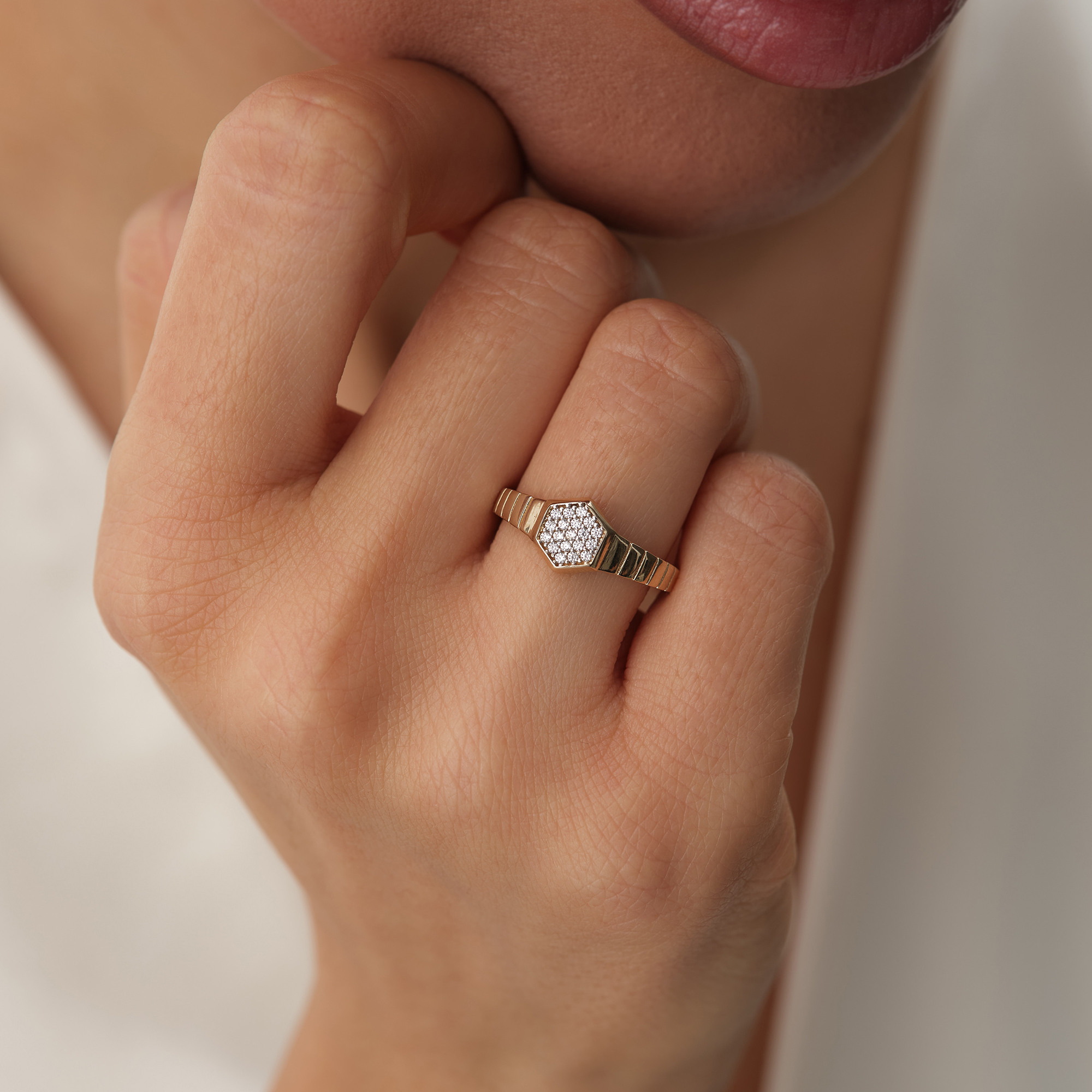 Minimal Üçgen Detaylı Taşlı Altın Yüzük