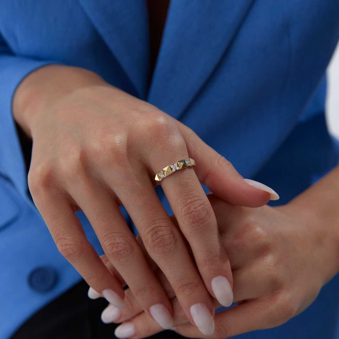 Sıralı Kayık Taşlı Altın Yüzük - Cemart Sıralı Kayık Taşlı Altın Yüzük - Cemart (1)