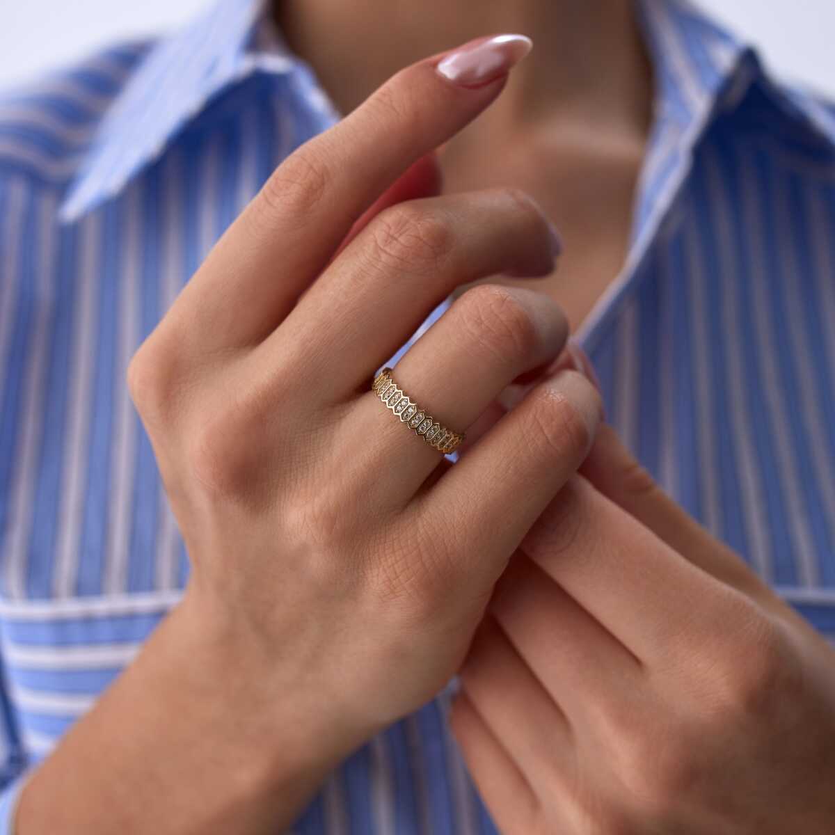 Altıgen Detay Taşlı Yüzük