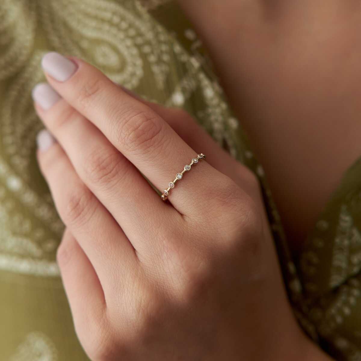 Sıralı Kayık Taşlı Altın Yüzük